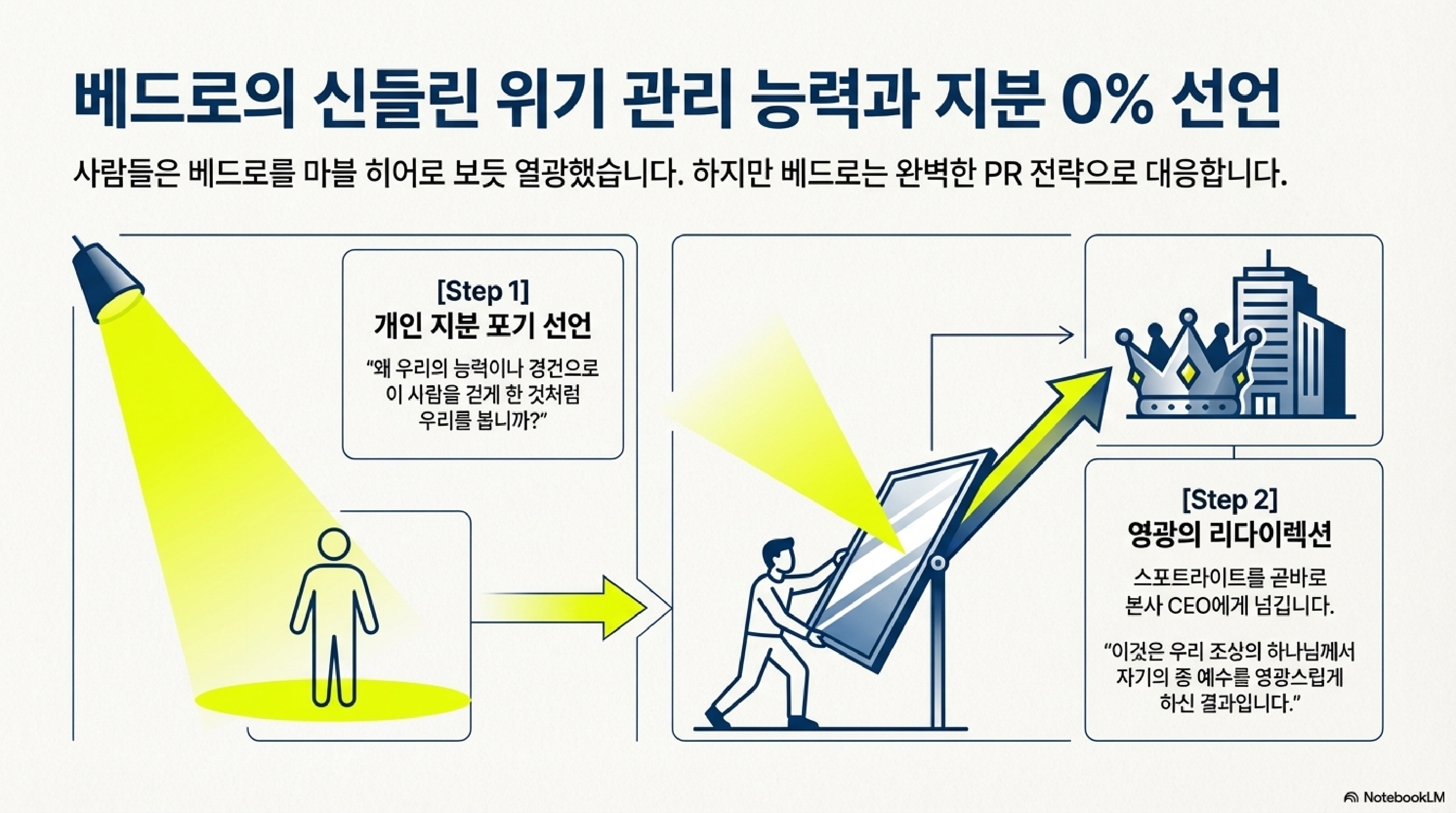 이 광경을 본 군중들은 기함하며 솔로몬 행각으로 구름처럼 몰려듭니다. 마치 기적을 일으킨 아이돌을 보듯 베드로를 추앙하는 눈빛들이죠. 여기서 베드로는 특유의 냉철함으로 상황을 정리합니다. 왜 우리를 주목하느냐는 것입니다. 이건 단순한 겸손 코스프레가 아닙니다. 이 기적의 지분 관계를 명확히 선을 긋는 비즈니스적 결단입니다.