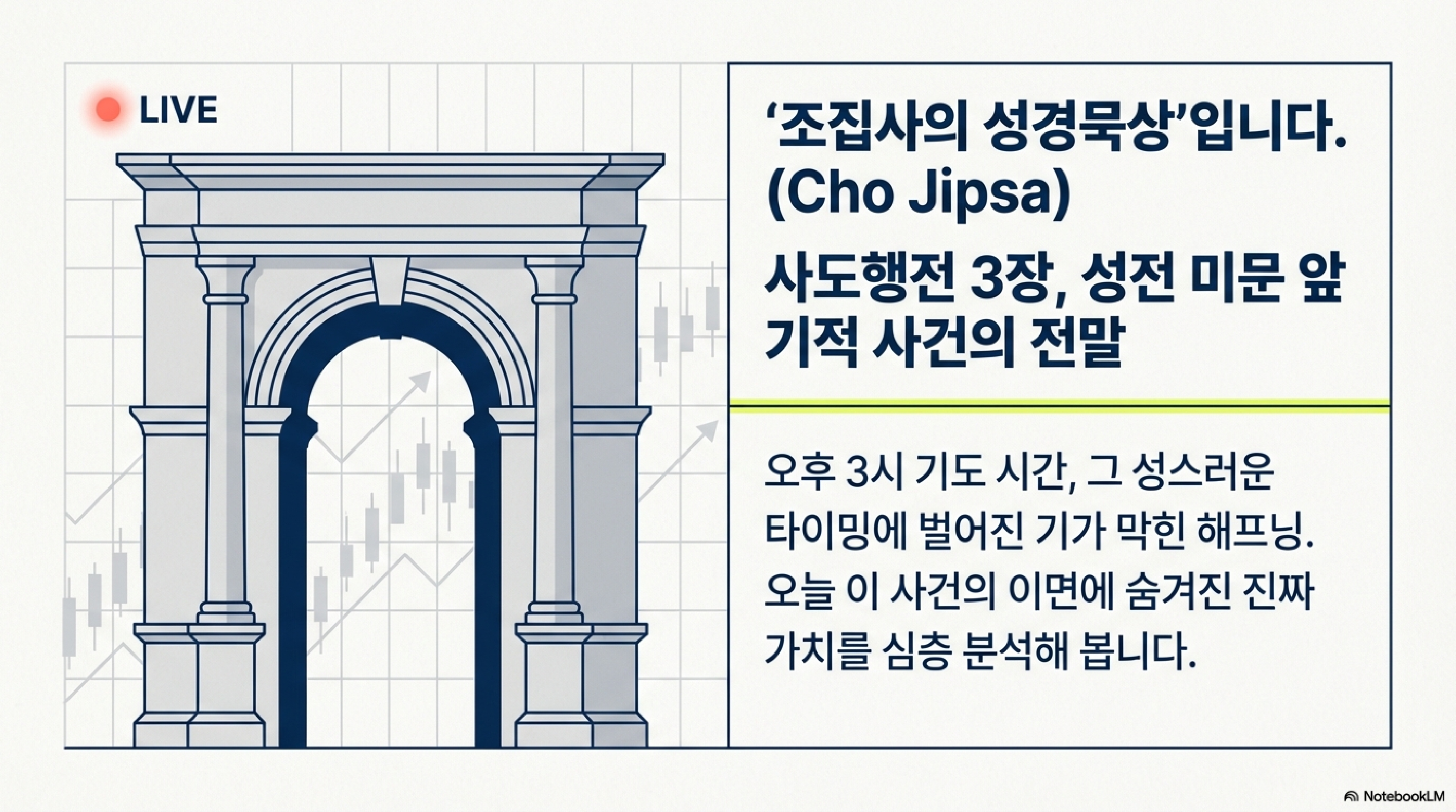 오늘 하루, 여러분의 미문에서 썩어질 은과 금이 아닌, 예수 그리스도의 이름으로 벌떡 일어나는 역전의 드라마를 쓰시길 바랍니다. 다음 4장에서는 이 기적의 여파로 벌어지는 공회에서의 박진감 넘치는 청문회 현장으로 돌아오겠습니다.