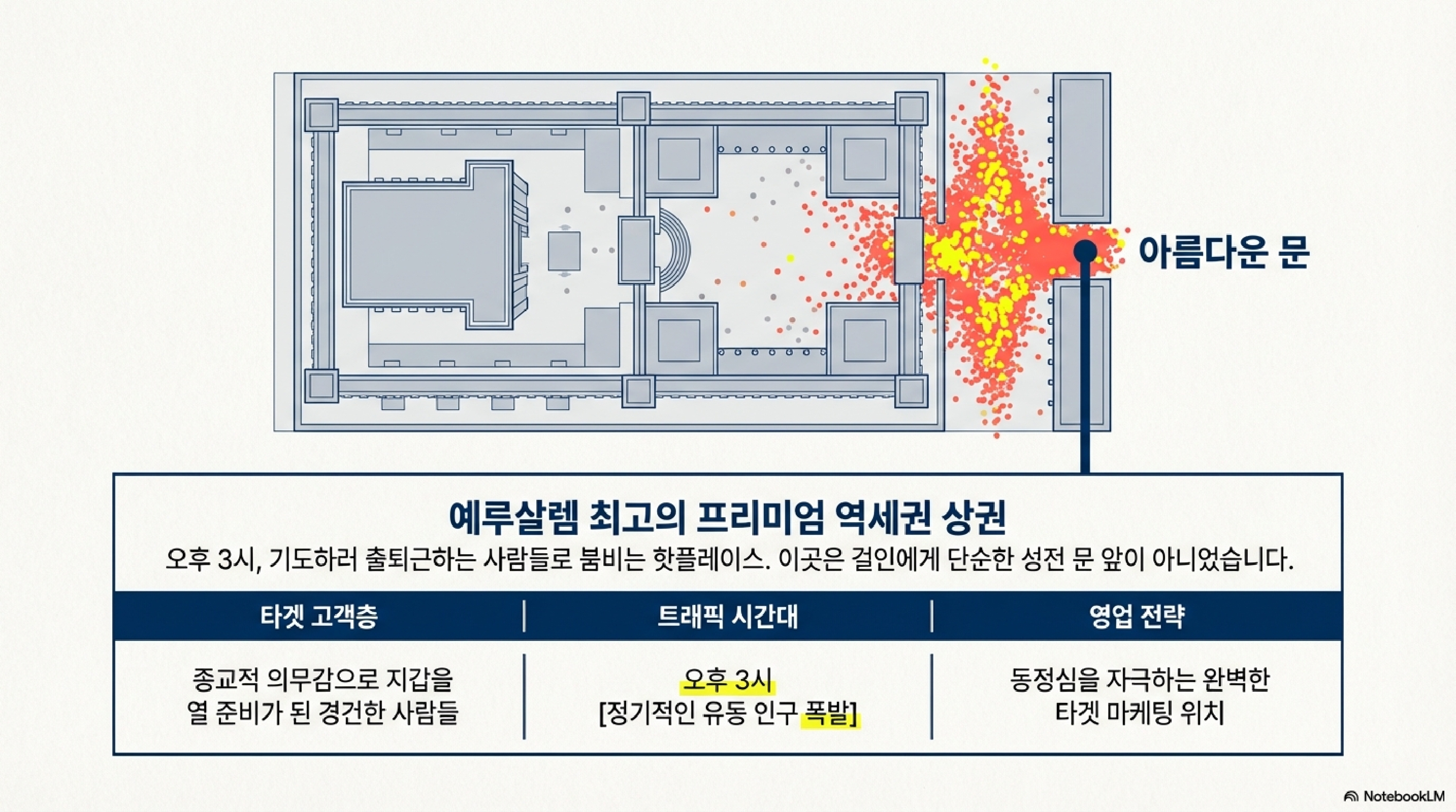 냉정하게 분석해 봅시다. 이 사람을 매일 여기 데려다 놓는 팀이 따로 있었다는 건, 이게 이미 검증된 비즈니스 모델이었다는 뜻입니다. 오후 3시, 기도하러 가는 사람들이 경건한 마음으로 지갑을 열 준비가 된 그 골든타임을 노린 아주 영리한 배치였죠. 종교적 시스템의 문턱에 서 있지만 정작 그 시스템 안으로는 들어가지 못하는 이 아이러니한 경계선에서, 그는 매일 동전 몇 푼에 자신의 인생을 저당 잡히고 있었습니다.
