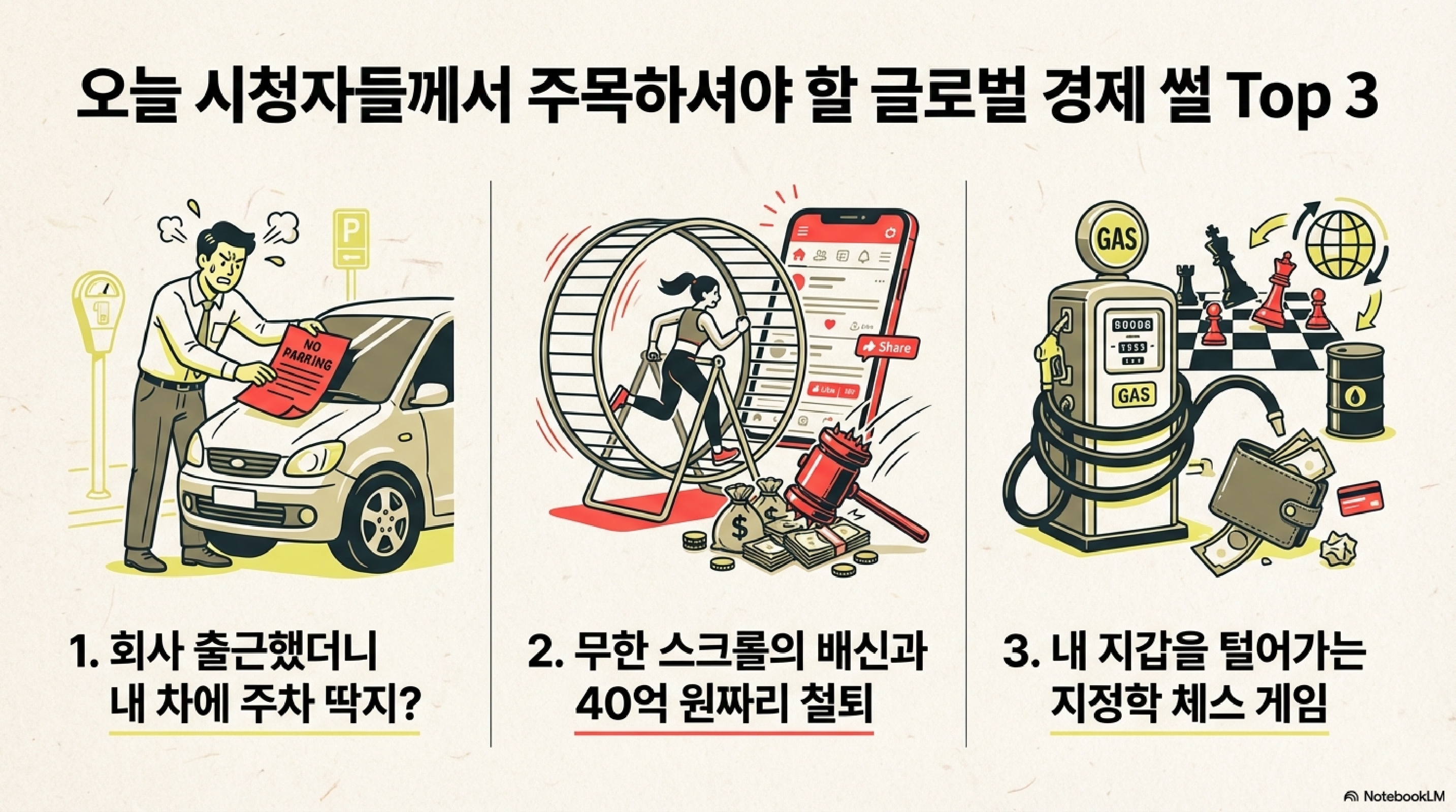 오늘 방송을 끝까지 들어야 하는 이유는 명확합니다. 빅테크의 알고리즘 설계부터 주유소 가격표에 숨겨진 심리전, 그리고 직장 내 주차 공간을 이용한 길들이기까지, 글로벌 경제의 파도는 지금 여러분의 지갑과 정신을 아주 정교하게 조준하고 있기 때문입니다. 이 교묘한 설계도 이면을 지금부터 낱낱이 파헤쳐 보겠습니다.