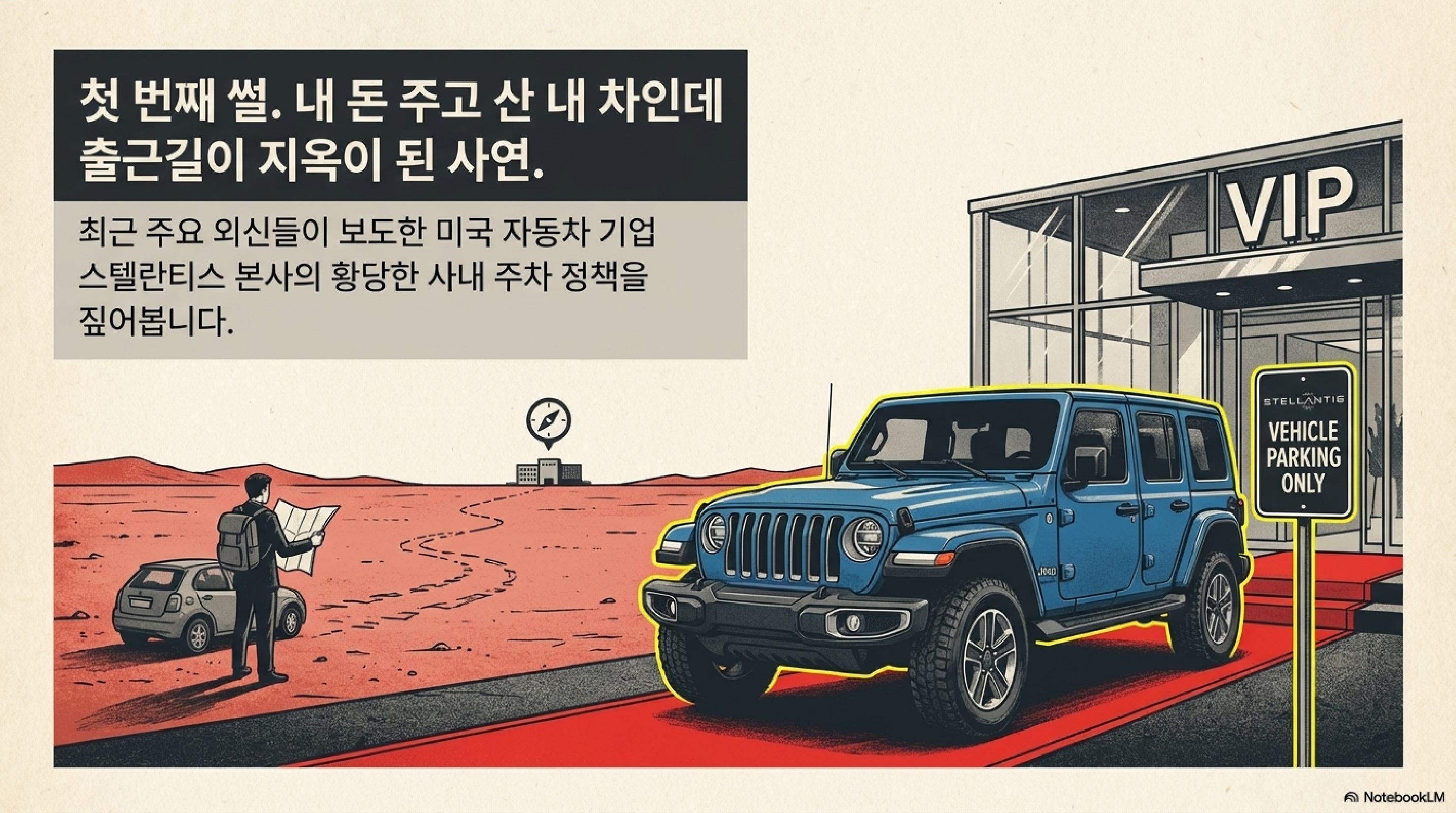 마지막으로 디트로이트 자동차 업계의 고약한 관행 하나 짚어보겠습니다. 지프의 모기업인 스텔란티스는 최근 사무실 복직 명령과 함께 기상천외한 브랜드 충성심 테스트를 시작했습니다. 자사 차량이 아닌 차를 타고 출근한 직원들에게 주차 위반 티켓을 발부하고, 반복되면 타이어를 잠그는 부팅(Booting) 조치까지 취하고 있습니다.