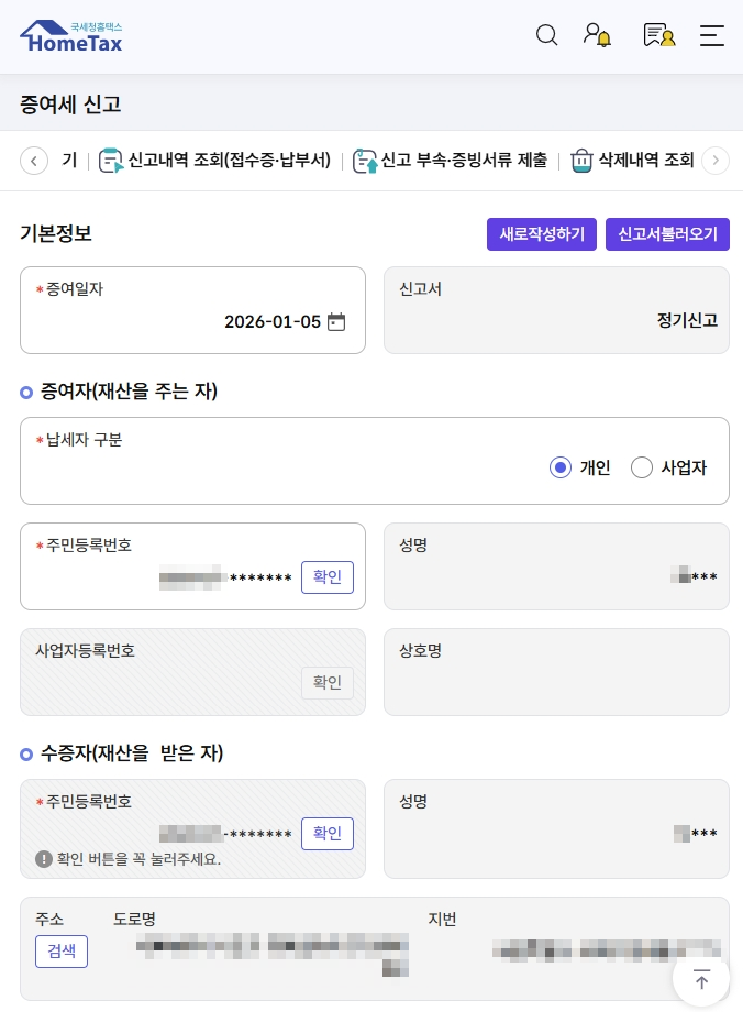 증여세 신고 - 홈택스