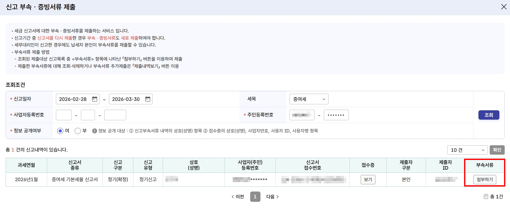 신고를 다 하고 나면 부속서류를 제출해야한다.
