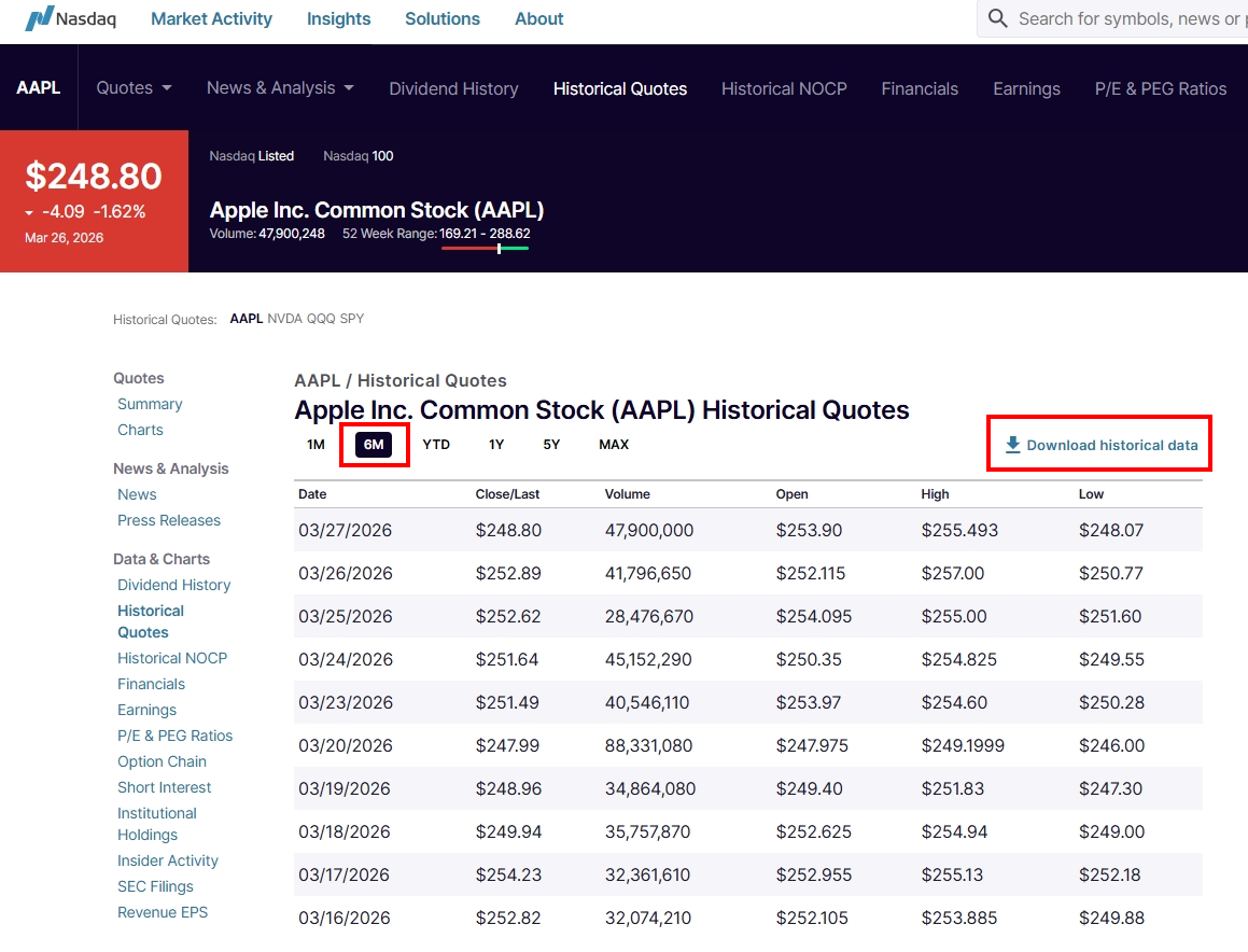 Apple (AAPL) Historical Data | Nasdaq