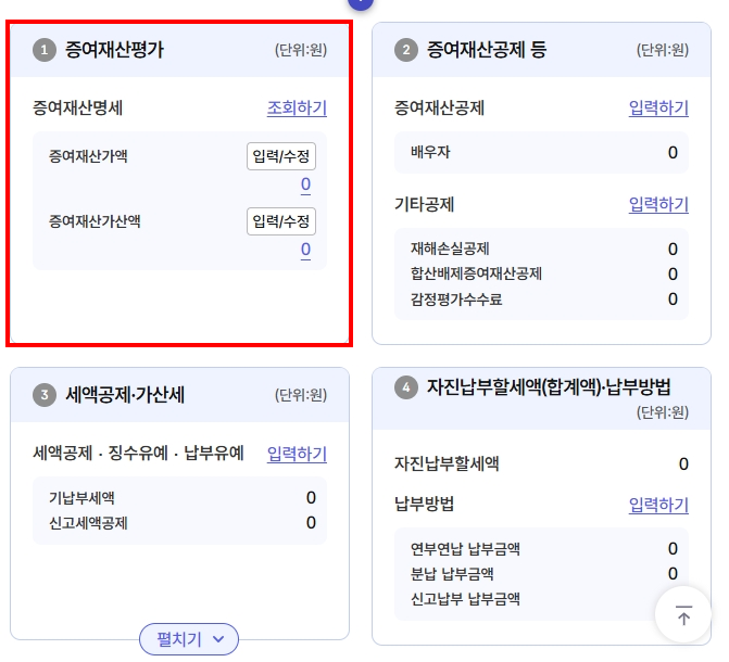 홈 > 세금신고 > 재산평가하기·모의계산 > (모의계산) 증여세 자동계산