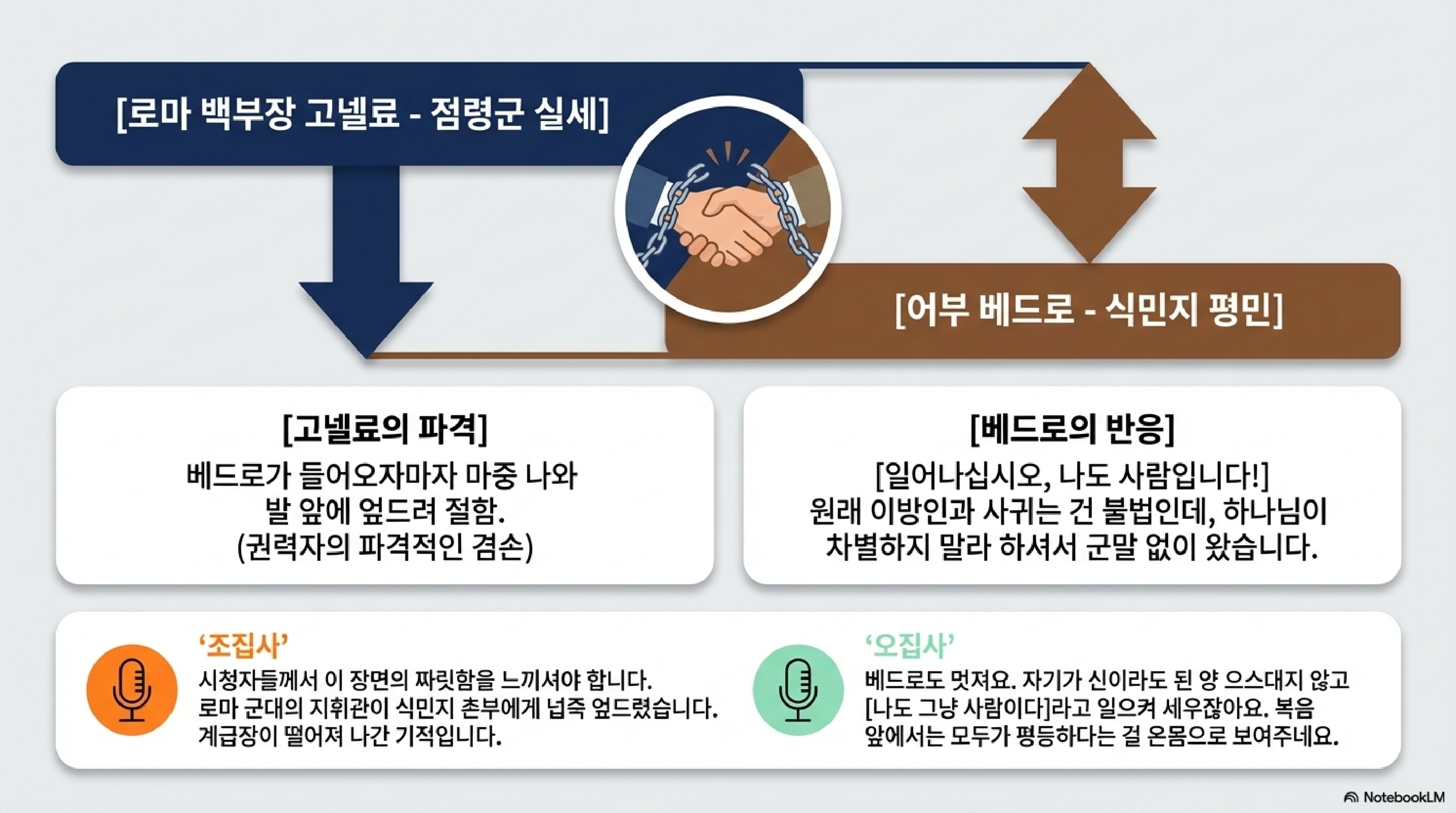 - 오집사: 그러니까 한마디로 고넬료는 식민지를 억압하고 지배하는 제국의 핵심 장교라는 거네요?