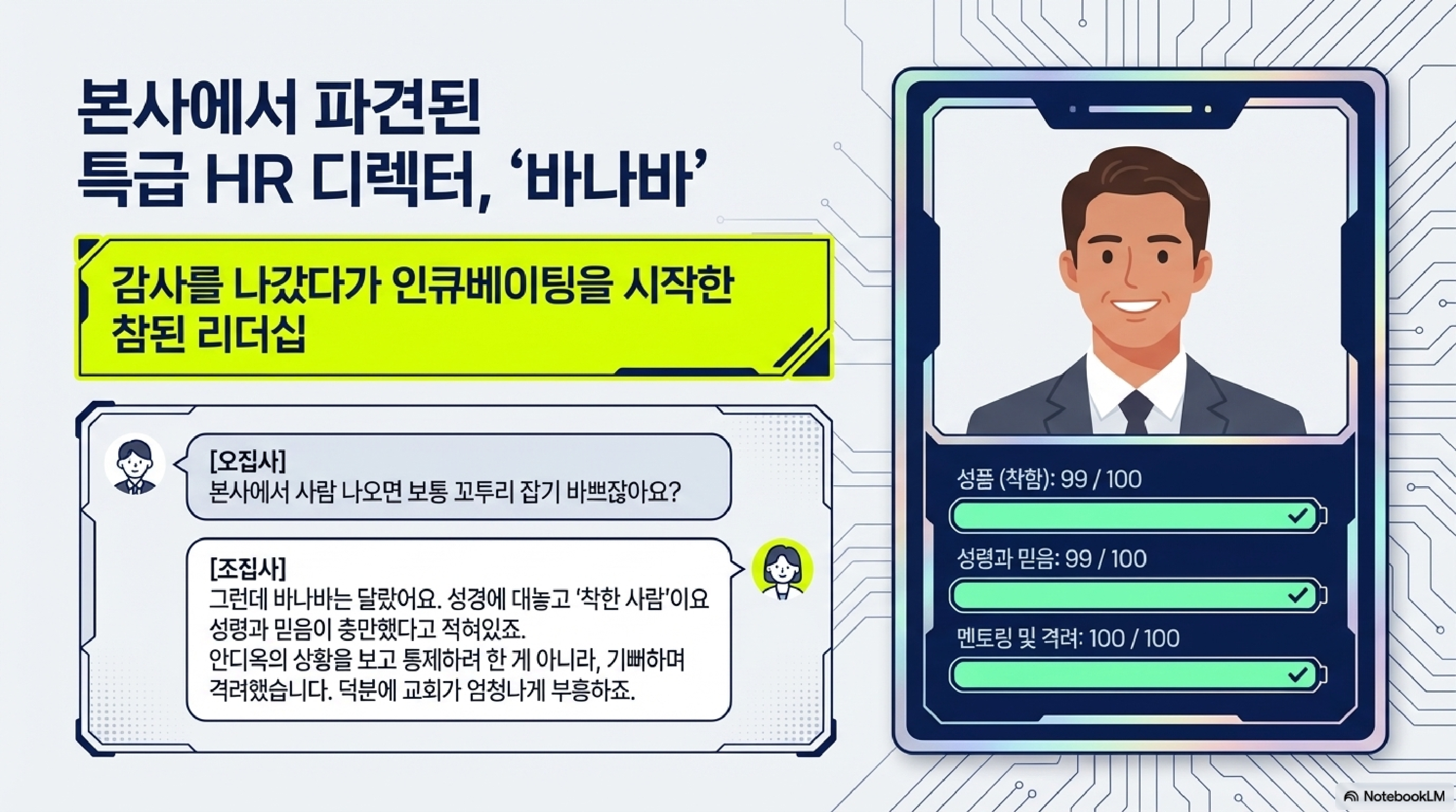 [Cho Jipsa] 이분들이 바로 초기 기독교의 '이름 없는 혁신가들'입니다. 시장의 반응이 폭발적이니 예루살렘 본사에서 안디옥 지사로 관리자를 파견하는데, 그게 바로 바나바입니다. 바나바를 보세요. 그는 성경에서 '착한 사람, 성령과 믿음이 충만한 사람'으로 묘사됩니다. 현대적인 관점에서 보면 최고의 '조직 융합형 리더(HR Manager)'입니다.