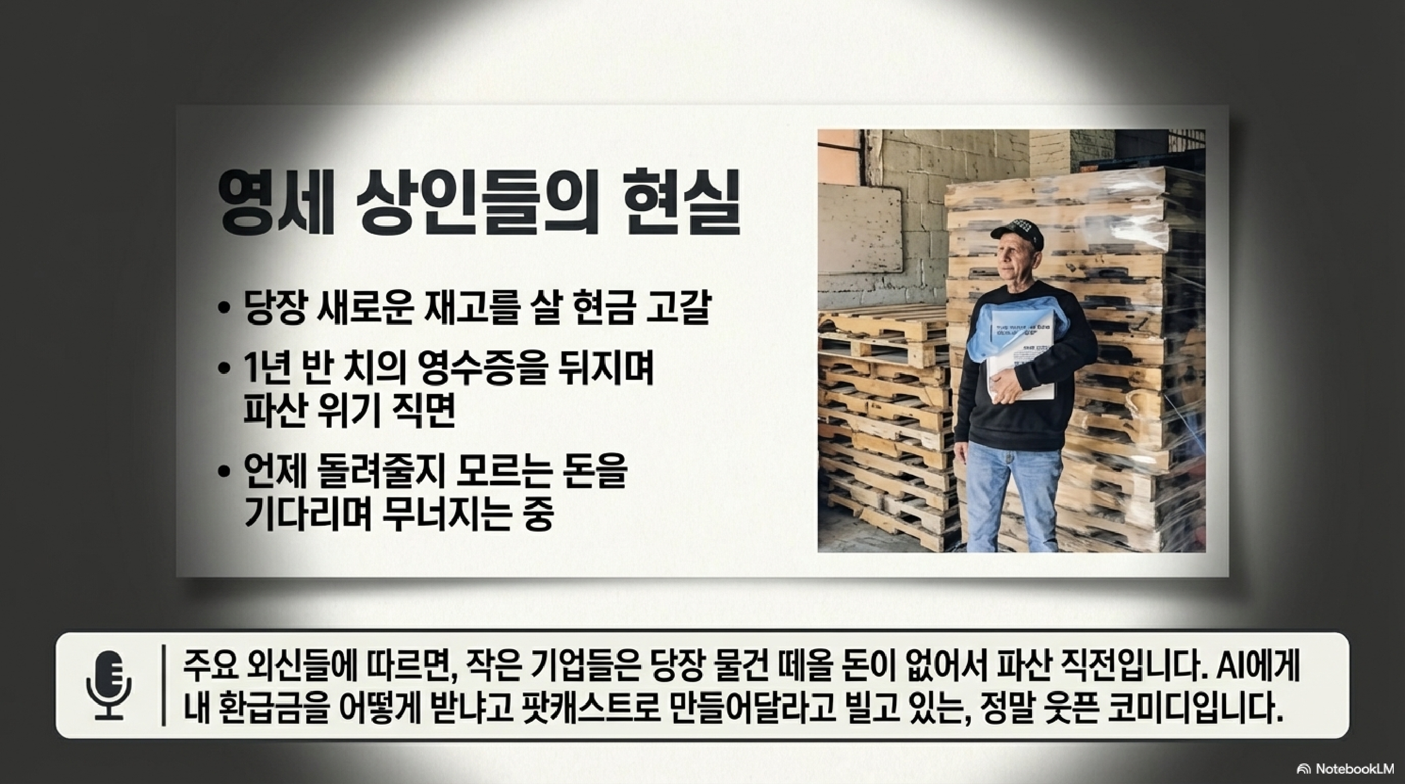 코스트코 같은 대형 형님들은 변호사 군단을 동원해서 소송을 걸고 권리를 챙기지만, 소상공인들은 죽을 맛입니다. 엔들리스 펜의 사장 케발 칸타리아 같은 사람은 관세 내느라 현금이 말라서 페이팔이나 쇼피피에서 고금리 대출을 받아 연명하고 있습니다. 정부는 돈을 돌려받고 싶으면 직접 엑셀 파일 만들어서 하나하나 입력하라는 식의 관료주의 벽을 세워뒀습니다.