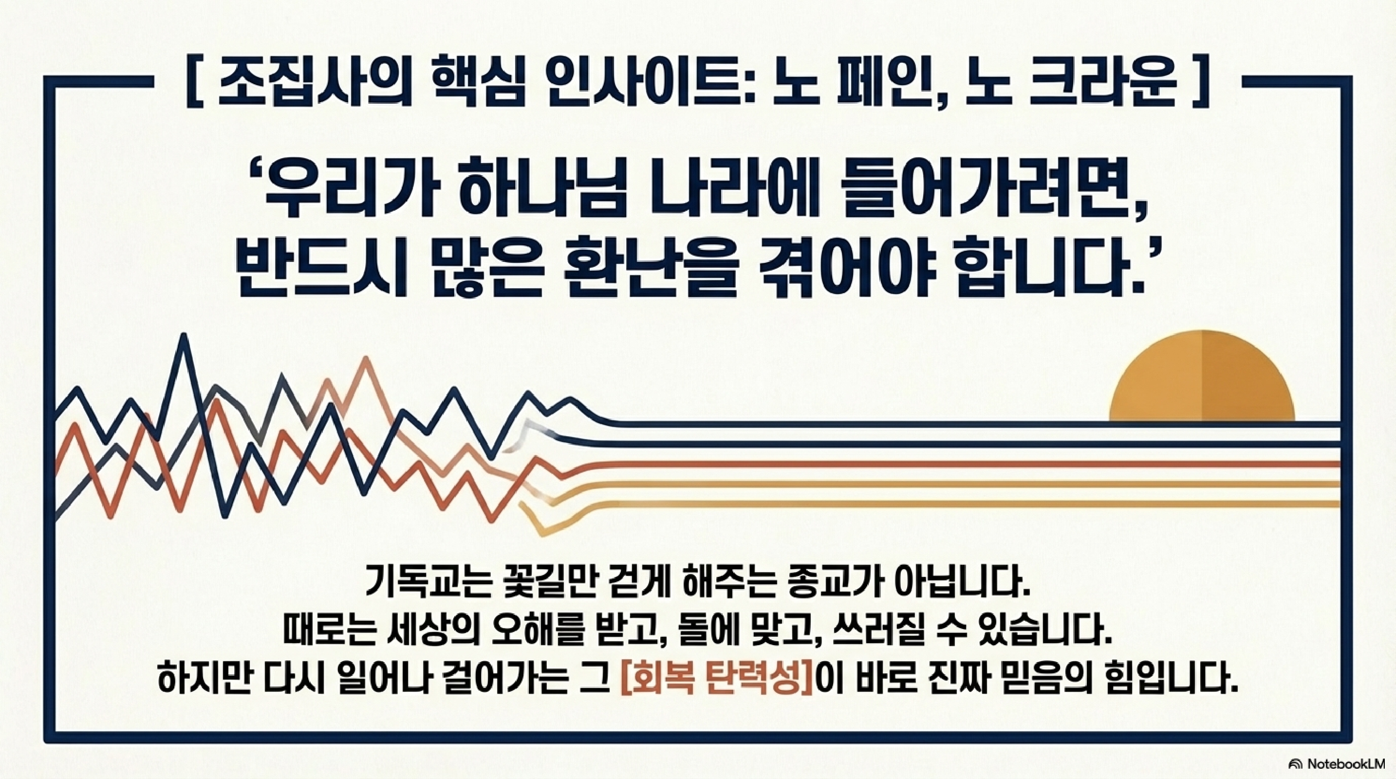 | 🧔 조집사 | 네. '고난은 이상한 게 아니라 당연한 거다', 이렇게 위로한 거죠. |