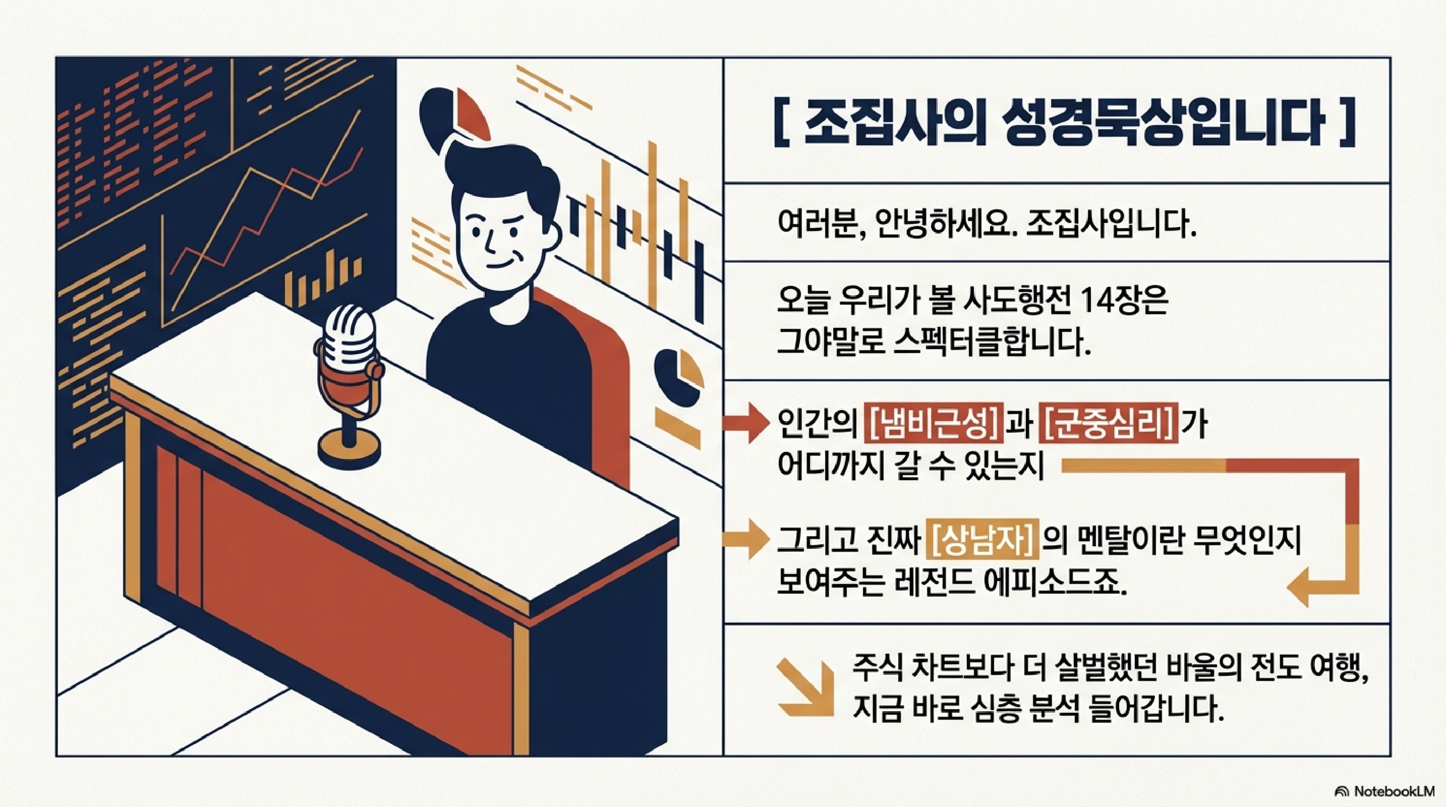 | 🧔 조집사 | 네, 대중의 그 엄청난 환호와 폭력 사이에서, 리더가 어떻게 흔들림 없이 시스템을 구축해 나가는지, 아주 치열한 현장 보고서죠. |