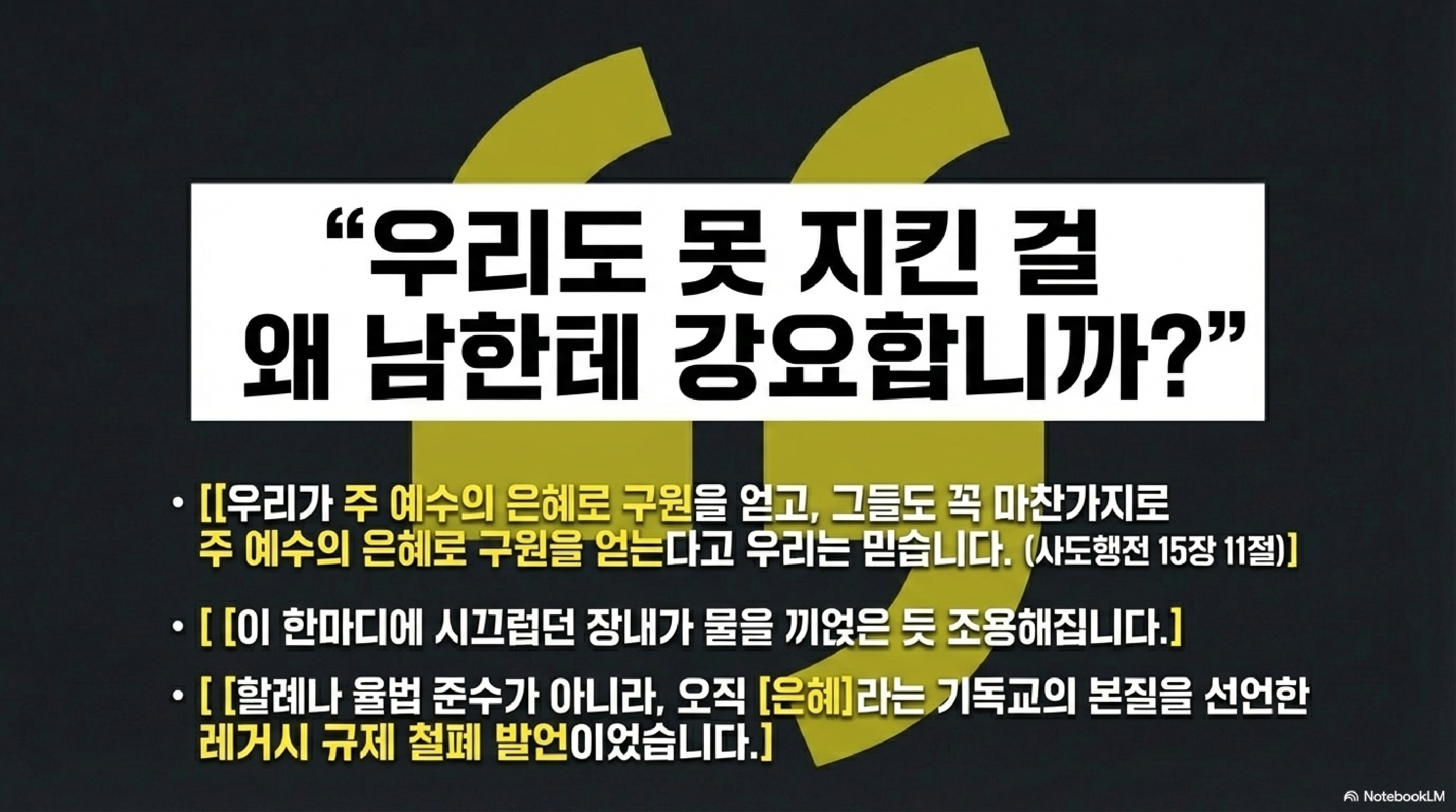 - 이 조항들은 신념의 타협이 아니라, '식탁 교제'를 이어가고 연대하기 위한 지혜롭고 아름다운 양보의 가이드라인이었습니다.