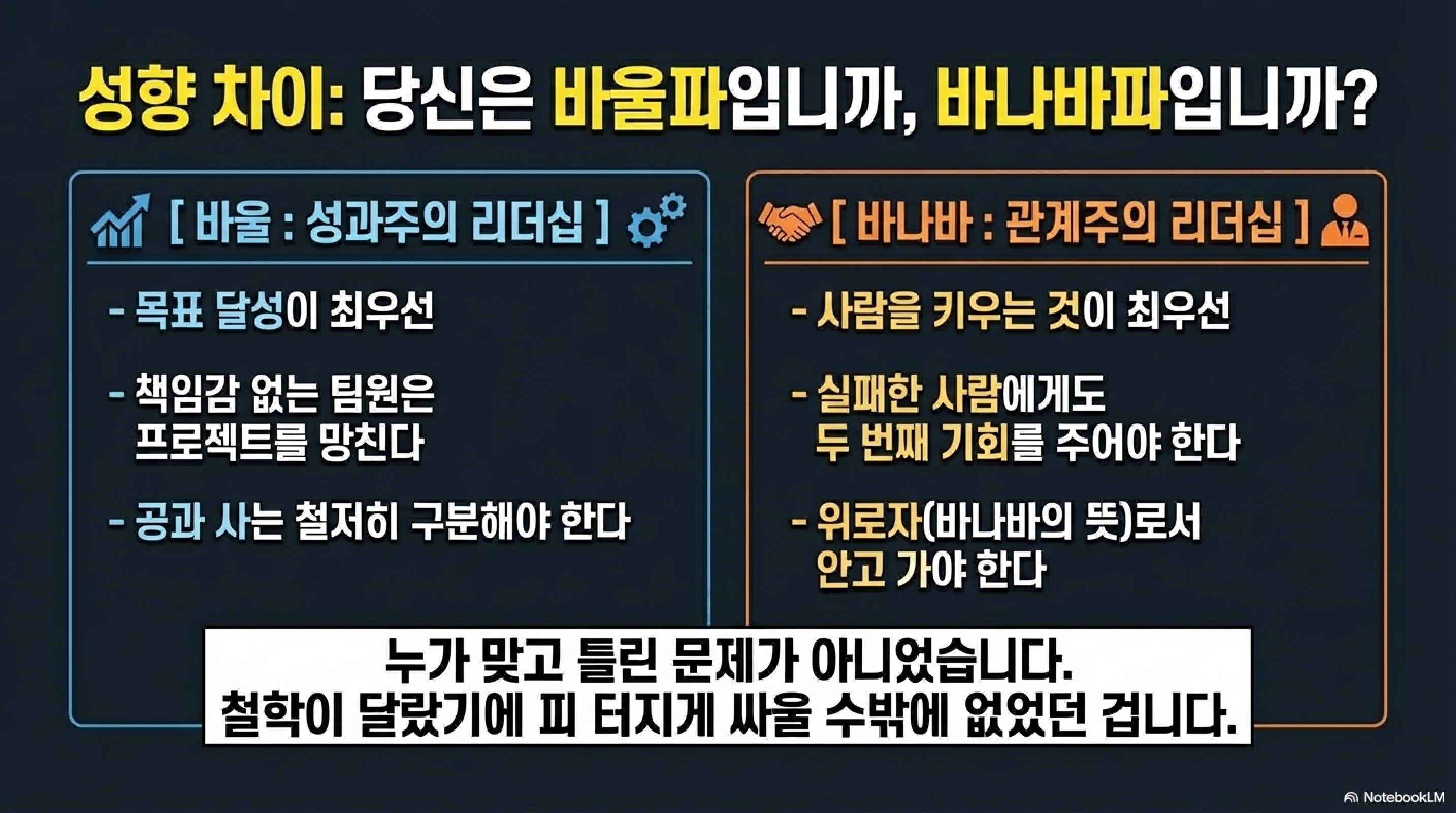 2차 선교 프로젝트를 앞두고 바울과 바나바가 정면충돌합니다. 지난번 여행 때 힘들다고 무단이탈했던 인턴 [마가 요한]을 다시 데려갈 것이냐의 문제입니다. 바나바는 "사람은 키워 써야 한다"는 [성장 중심 HR] 마인드였고, 바울은 "검증 안 된 사람과는 프로젝트 같이 못 한다"는 [성과 중심 PM] 마인드였습니다.