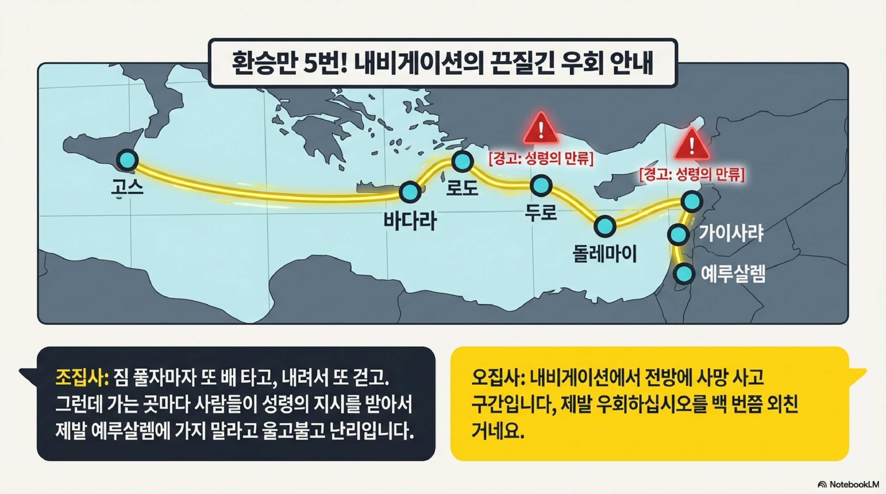 뻔히 망할 줄 아는 길로 스스로 걸어 들어간 이유. 성령의 경고와 동료들의 눈물 어린 만류에도 불구하고, 바울은 왜 예루살렘행을 고집했을까요? 사명과 생존을 가르는 팩트와 해석의 묵직한 메커니즘을 파헤칩니다.