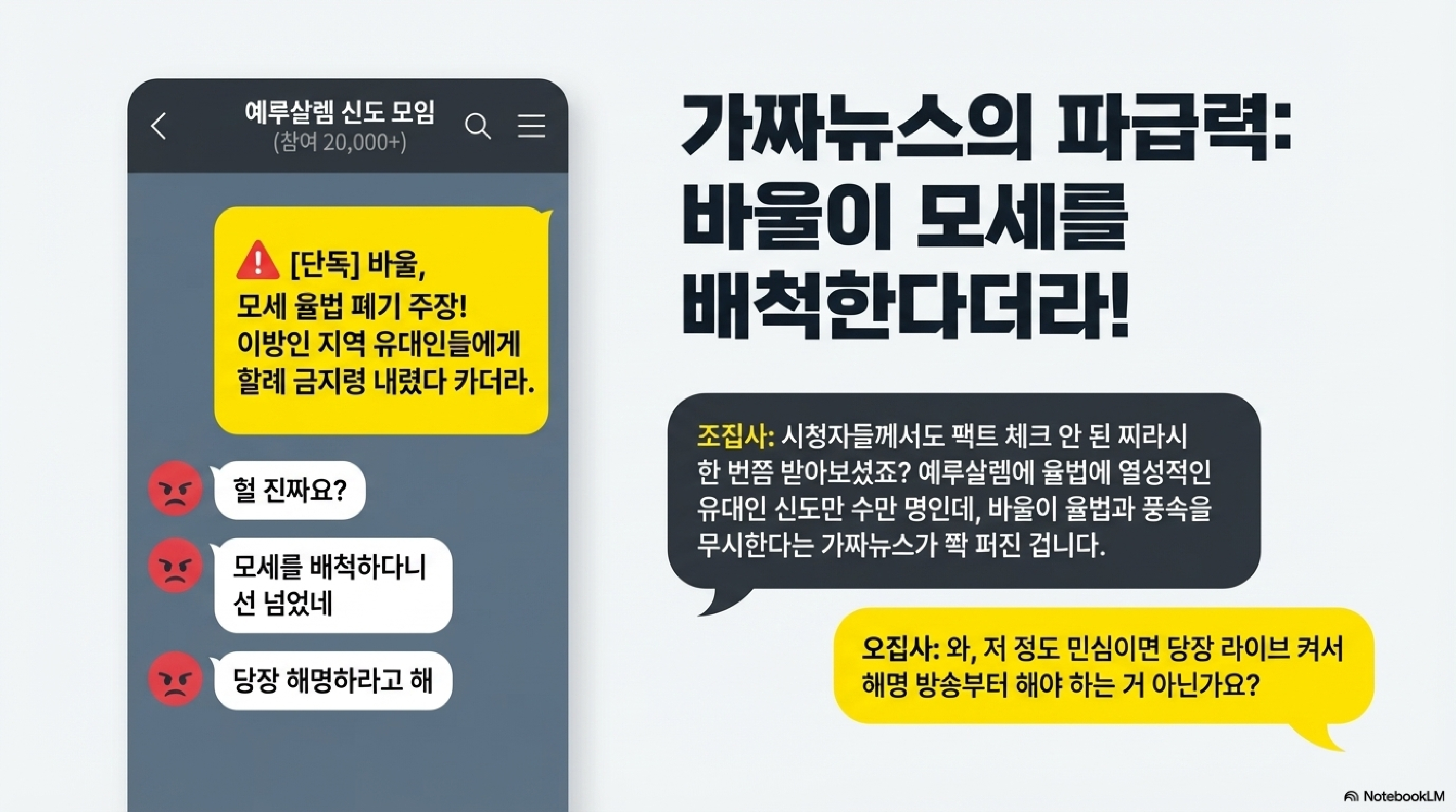 그 억울함은 정말 충분히 이해가 갑니다 하지만 여기서 우리는 왜 예루살렘의 유대인 기독교인들이 그런 헛소문에 그토록 쉽게 선동되었나 그 심리적이고 역사적인 메커니즘을 좀 들여다봐야 해요