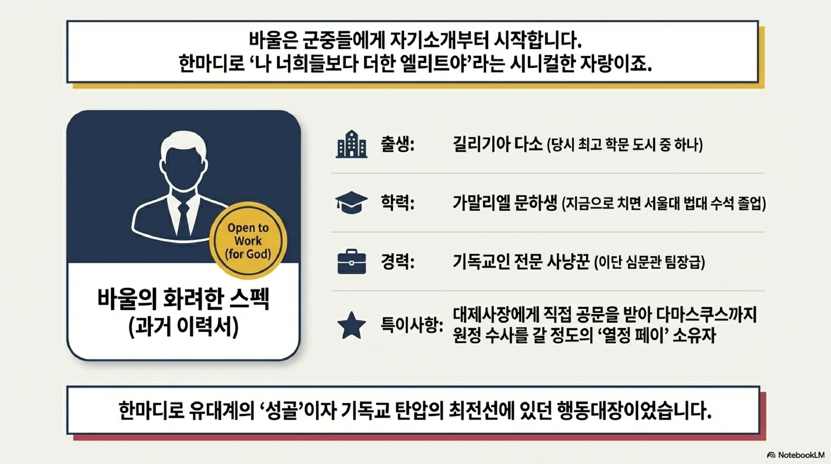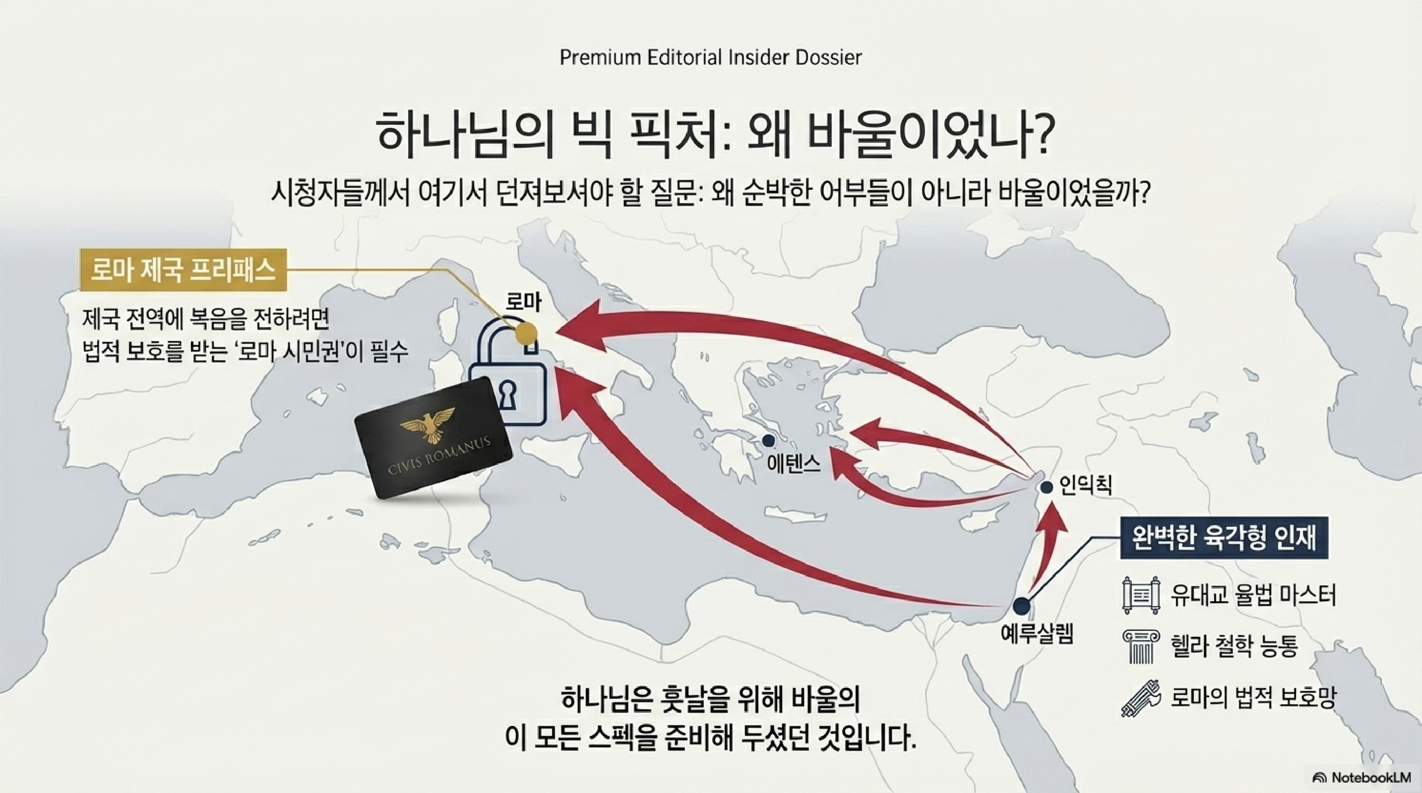 - 바울은 종교적 정체성과 제국의 시스템을 목적에 맞게 넘나들며 활용하는 고도의 전략적 유연성을 보여줍니다.