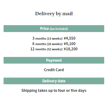 6개월 (26주) / 9,100엔