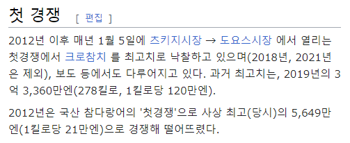 키로당 120만엔 1,200만원이라고 하니 그 가격이 상상이 간다.