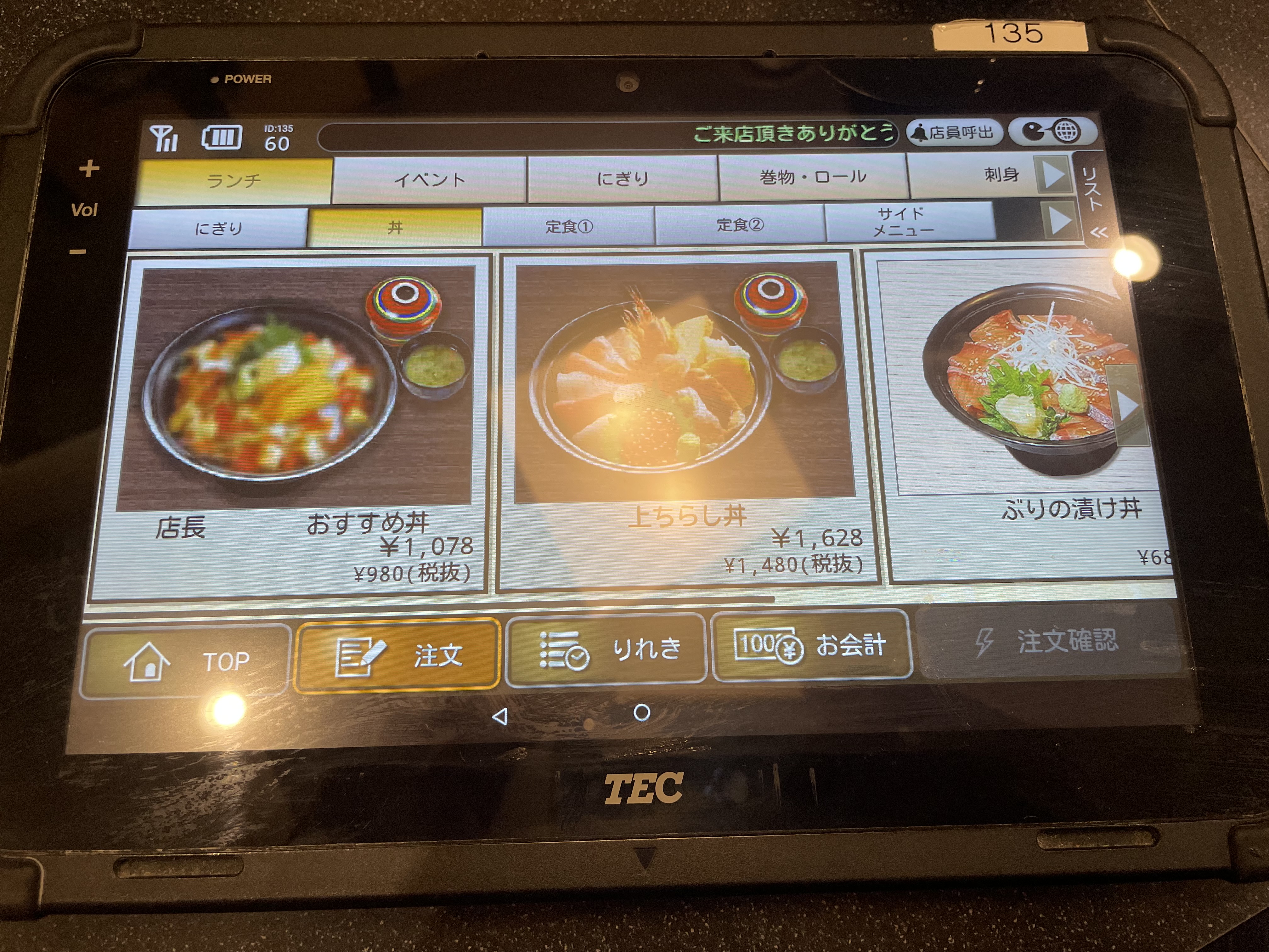 점장 추천 돈부리가 1,078엔
