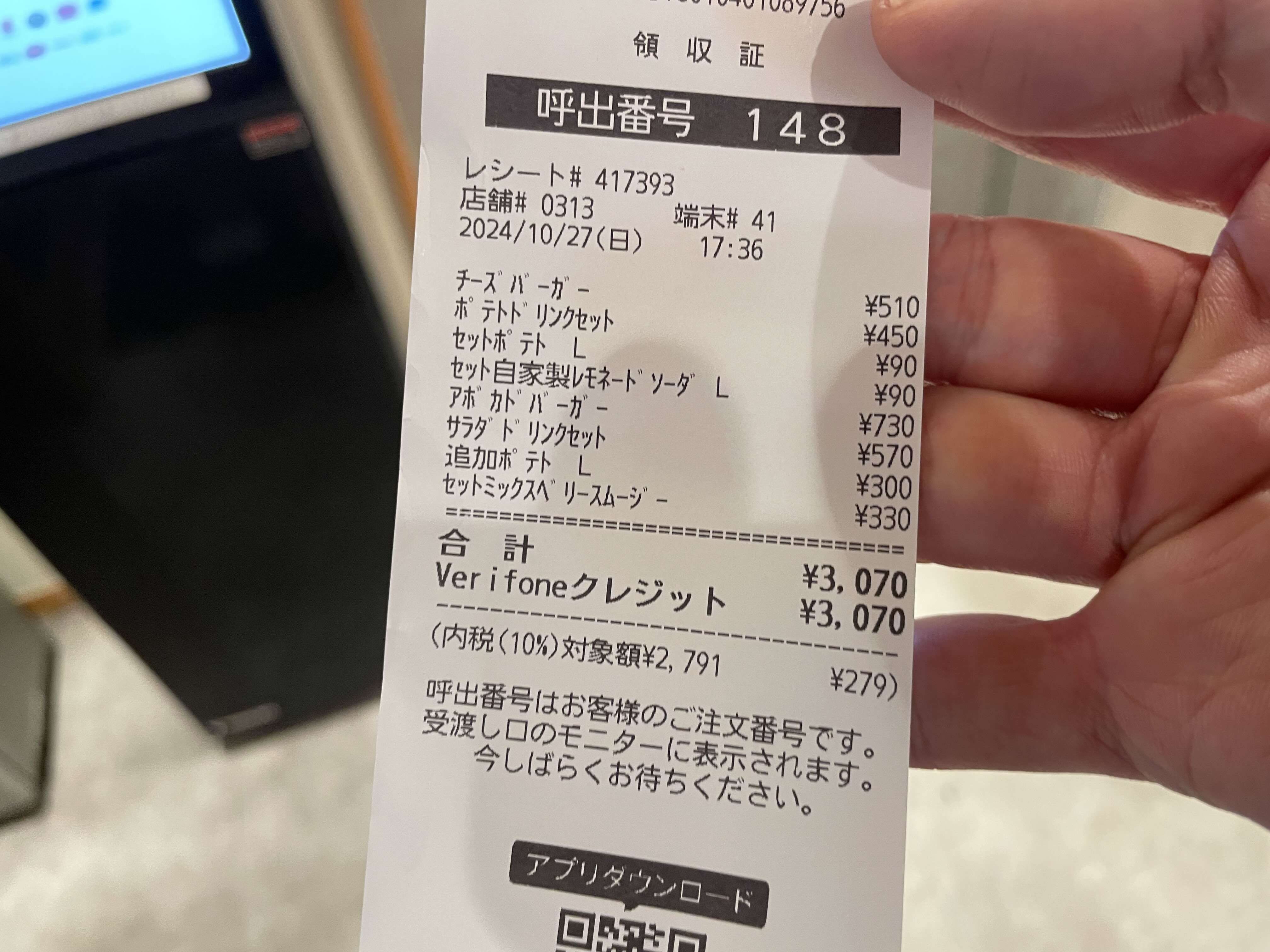 가격은 서드버거가 1,030엔 (만원정도)