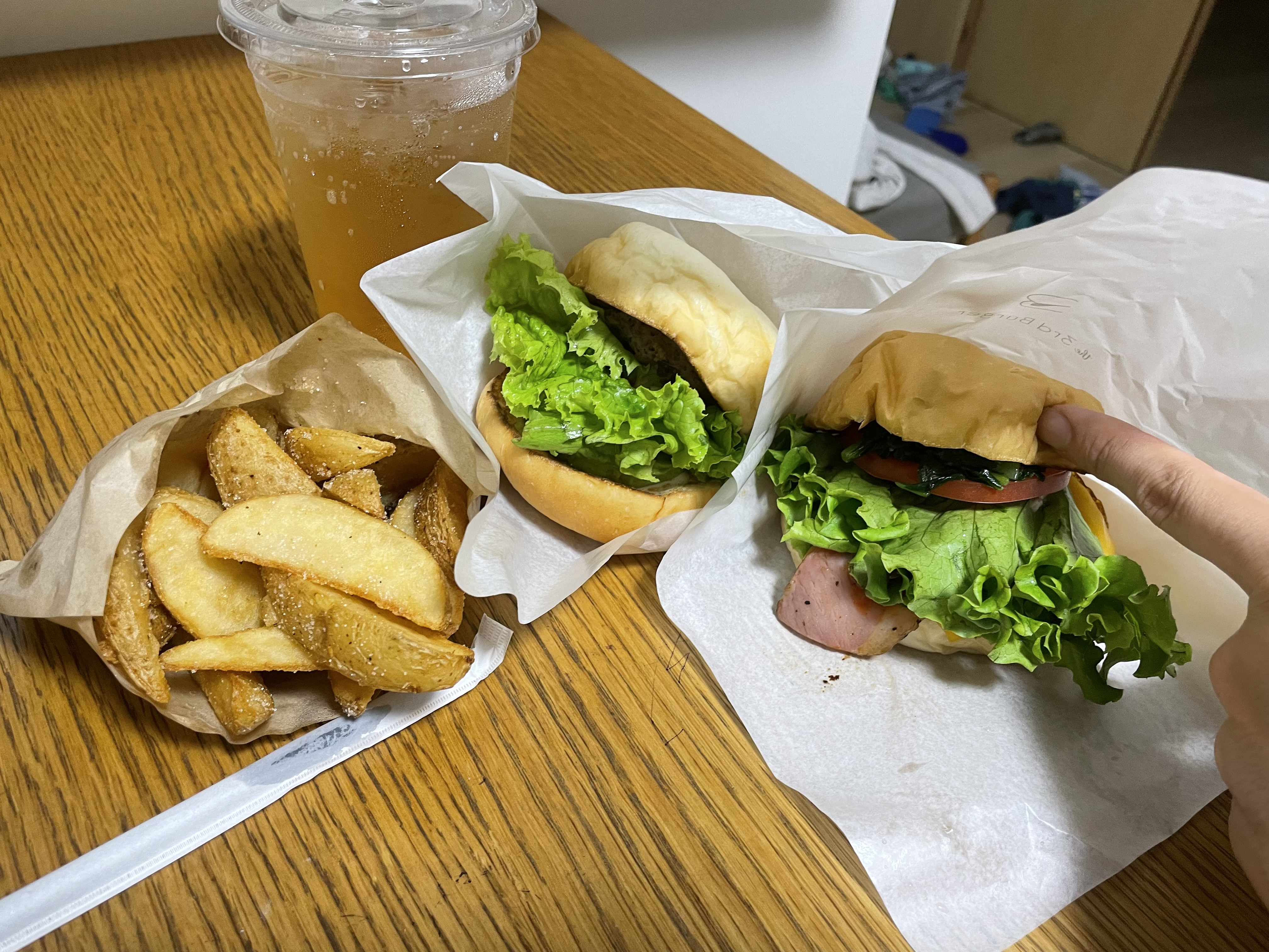 테이크아웃으로 대표적인 더 서드버거와 아보카도 버거를 먹었다.