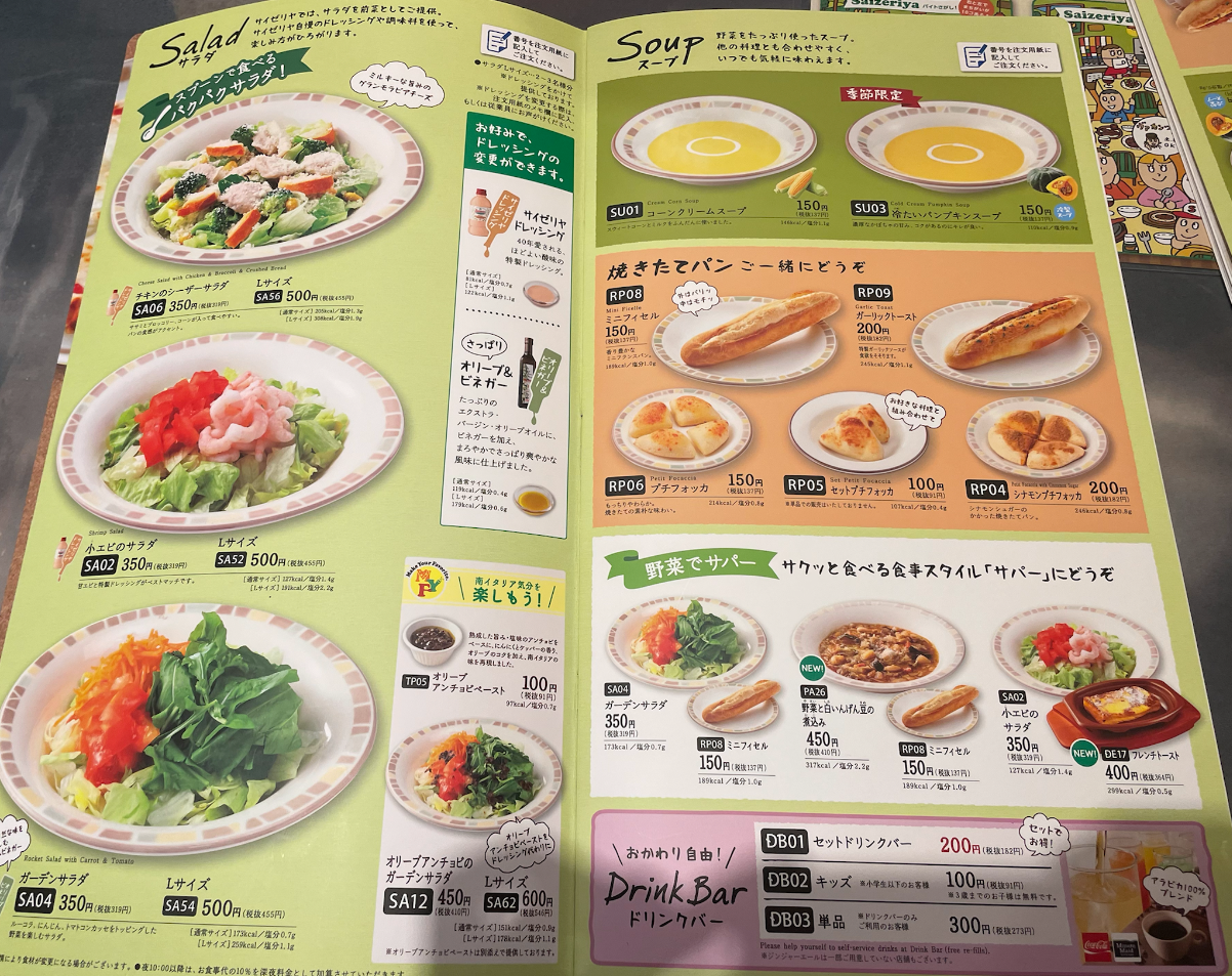 샐러드 350엔...