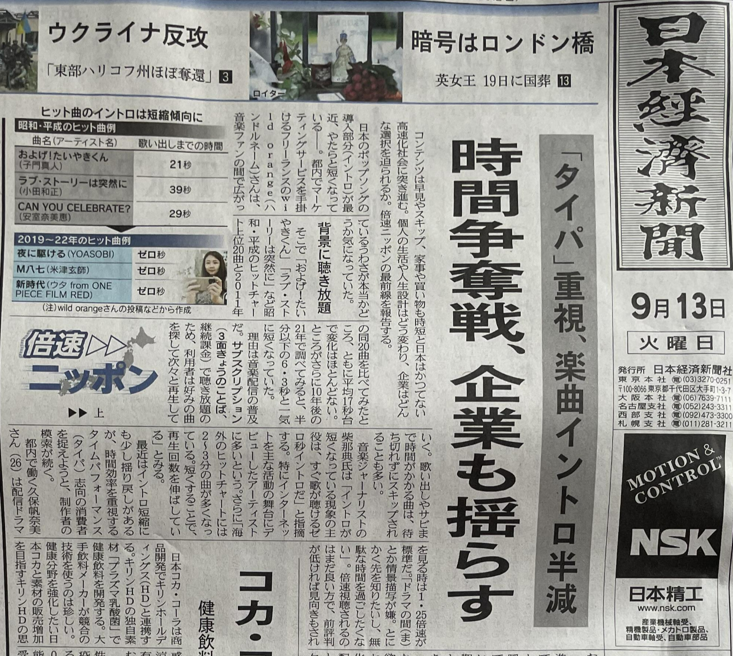 노래의 인트로는 점점 짧아진지는 경햐이 있다는 내용이 닛케이 1면에 실렸다.