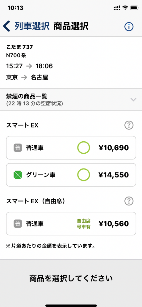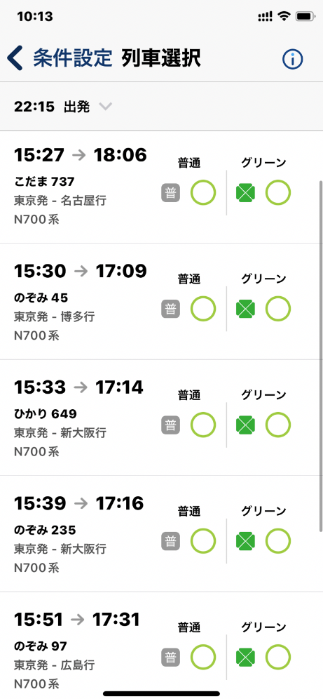 아래는 EX App 이라는 신칸센 예약 앱이다.