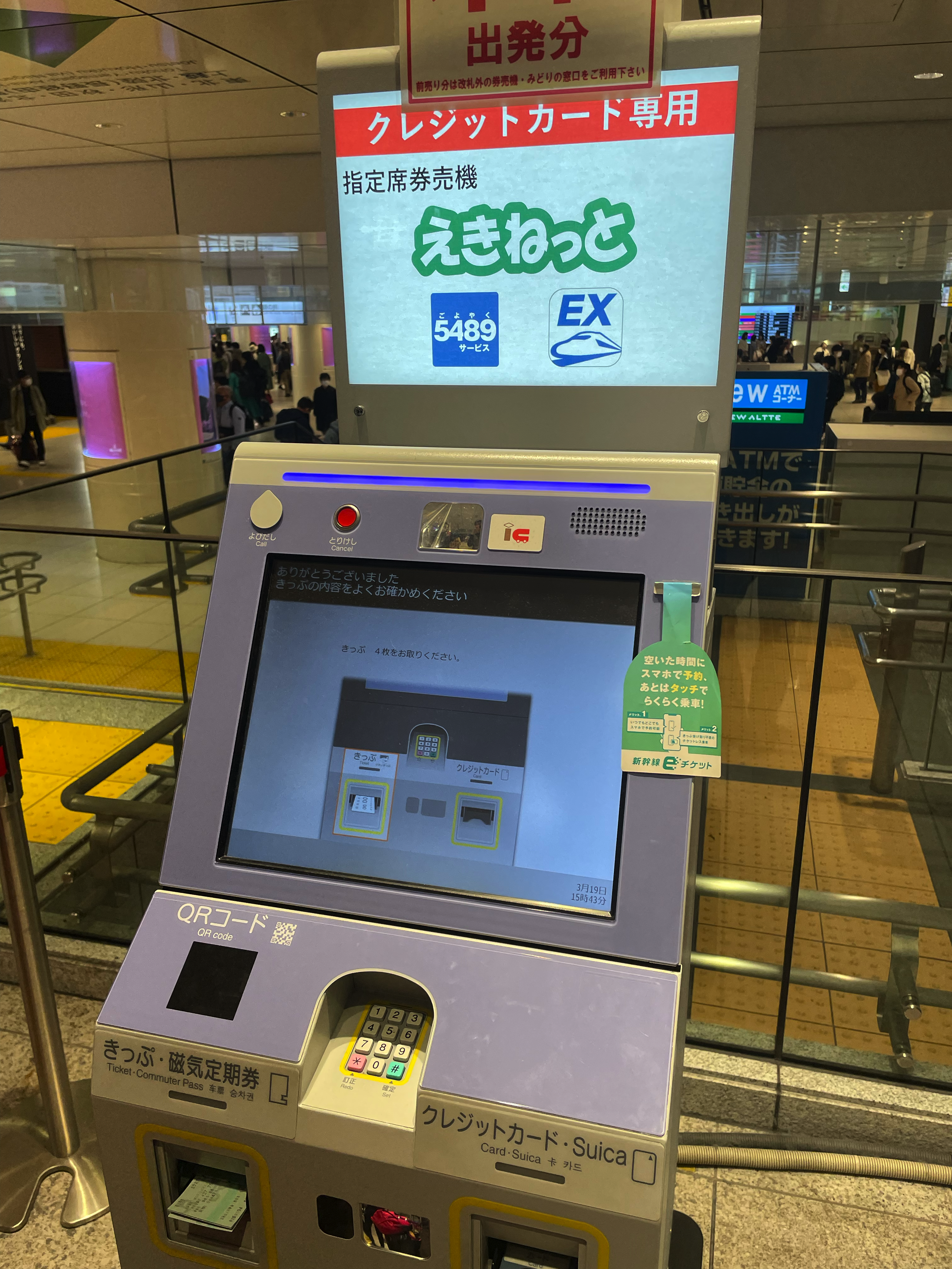 역에 도착해서는 앱에서 어카운트 -> 수취 코드 발행 으로 QR을 띄워서 기계에서 표를 출력했다.