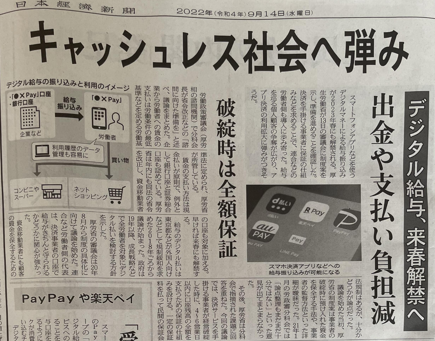 일본이 아무래도 현금 사용이 높다보니까 이래저래 사회적 비용이 많이 발생하여 캐쉬리스 문화를 도입하고자 정부차원에서도 추진 중에 있고 최근 기사로는 월급도 페이로 받는 것을 내년 봄 23년 봄부터 추진한다고 한다.
