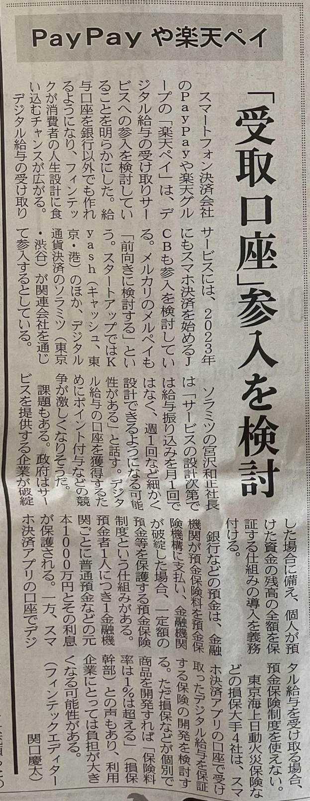일본에서 일하는 외국인 노동자의 경우 계좌를 만들기 어려운 사람들도 있는데 그런 경우 디지털 머니를 통한 급여 수취도 가능해질 예정