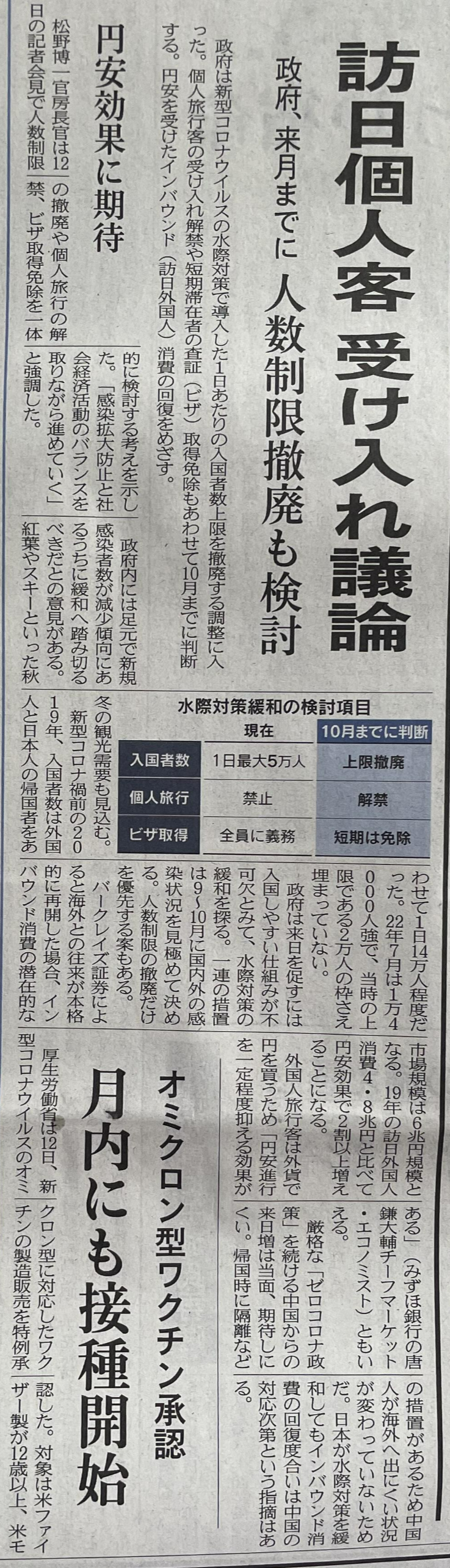 9~10월의 상황을 보면서 입국자수 제한도 철폐할 예정