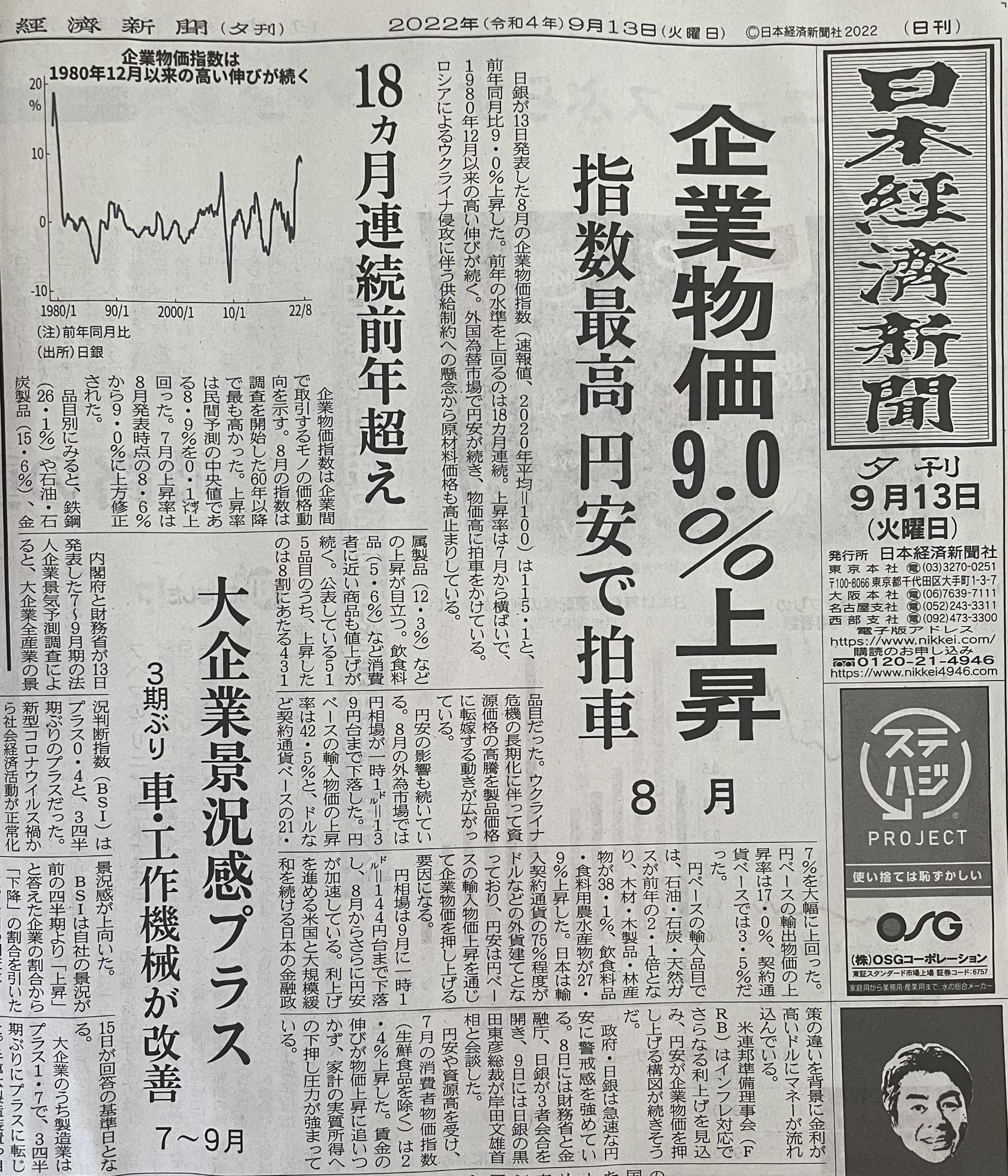일본도 연일 물가 상승으로 기사가 나오고 있다.