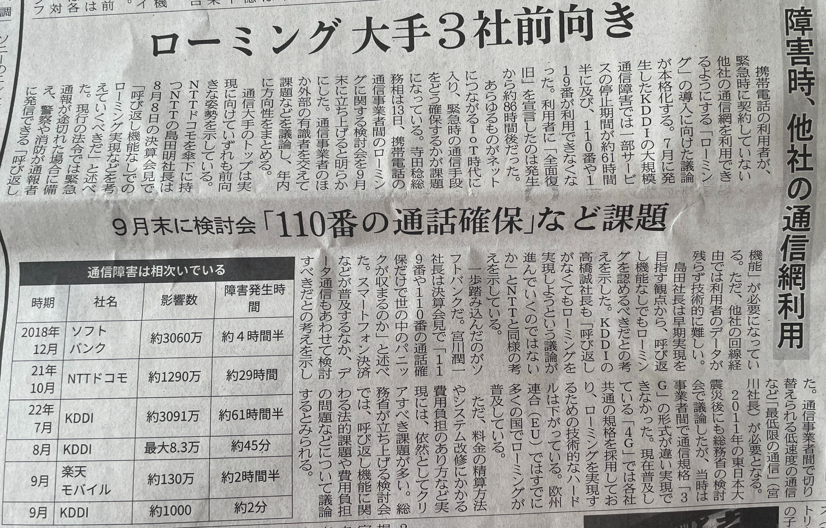 특히 7월에 KDDI 통신 장애는 무려 61시간 발생했는데 110 119 등의 이용도 불가했다.