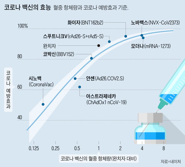 특히 혈중 항체량도 예방률에 비례하여 낮은 것으로 보아, 분명히 추가적으로 백신을 맞아야할 것으로 보인다.