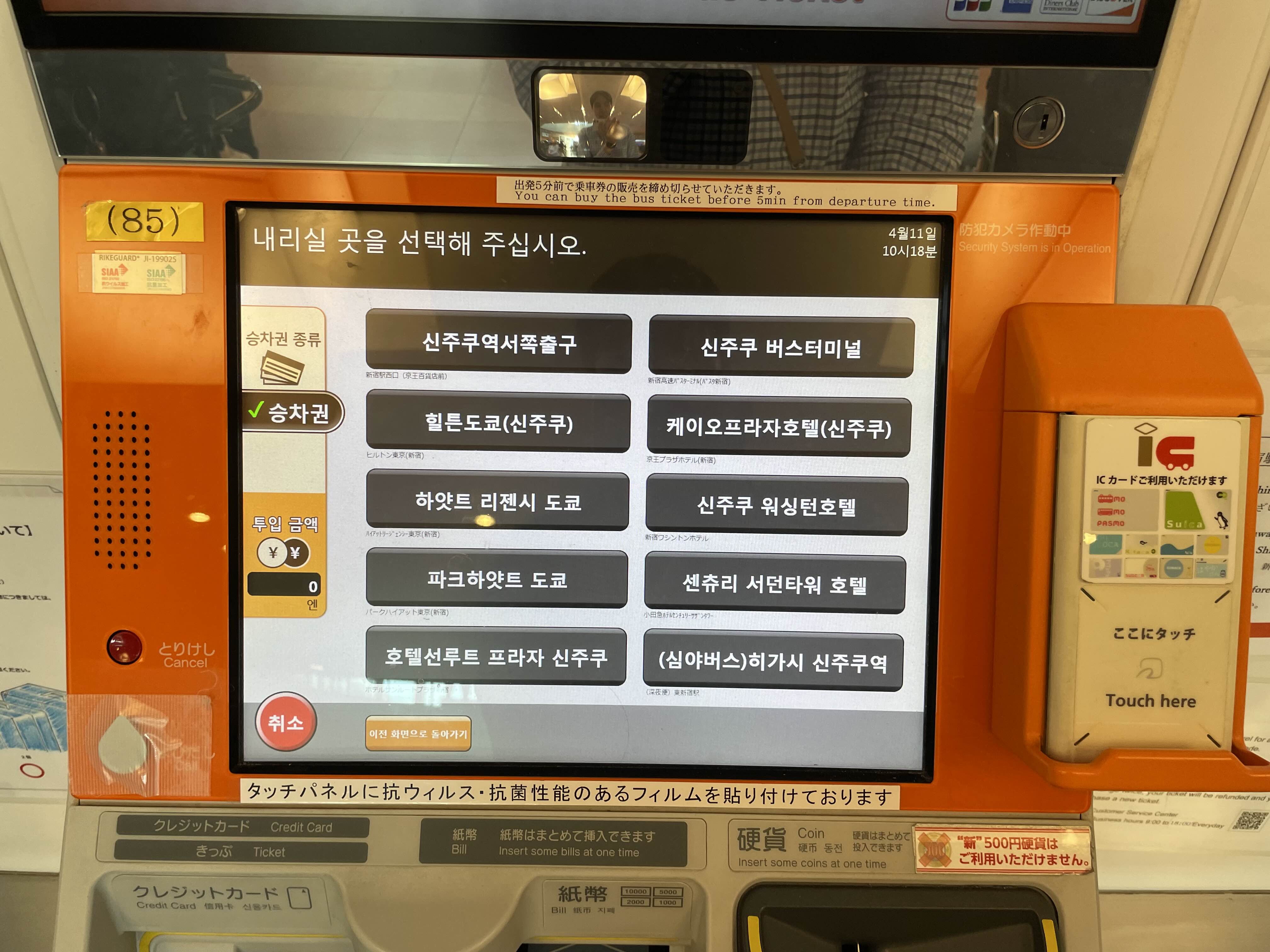 신주쿠 니시구찌 갔다가 버스터미널로 가는 구조다