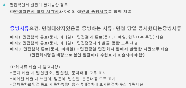 면접확인서 대체서류