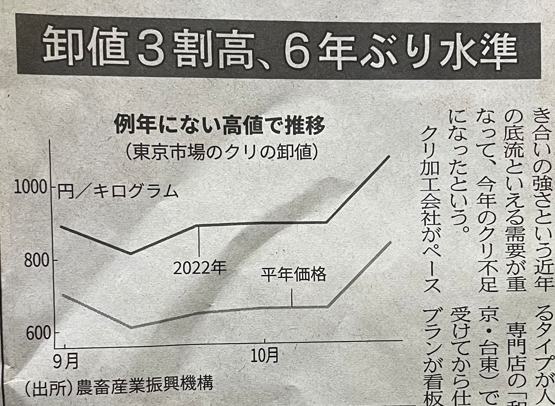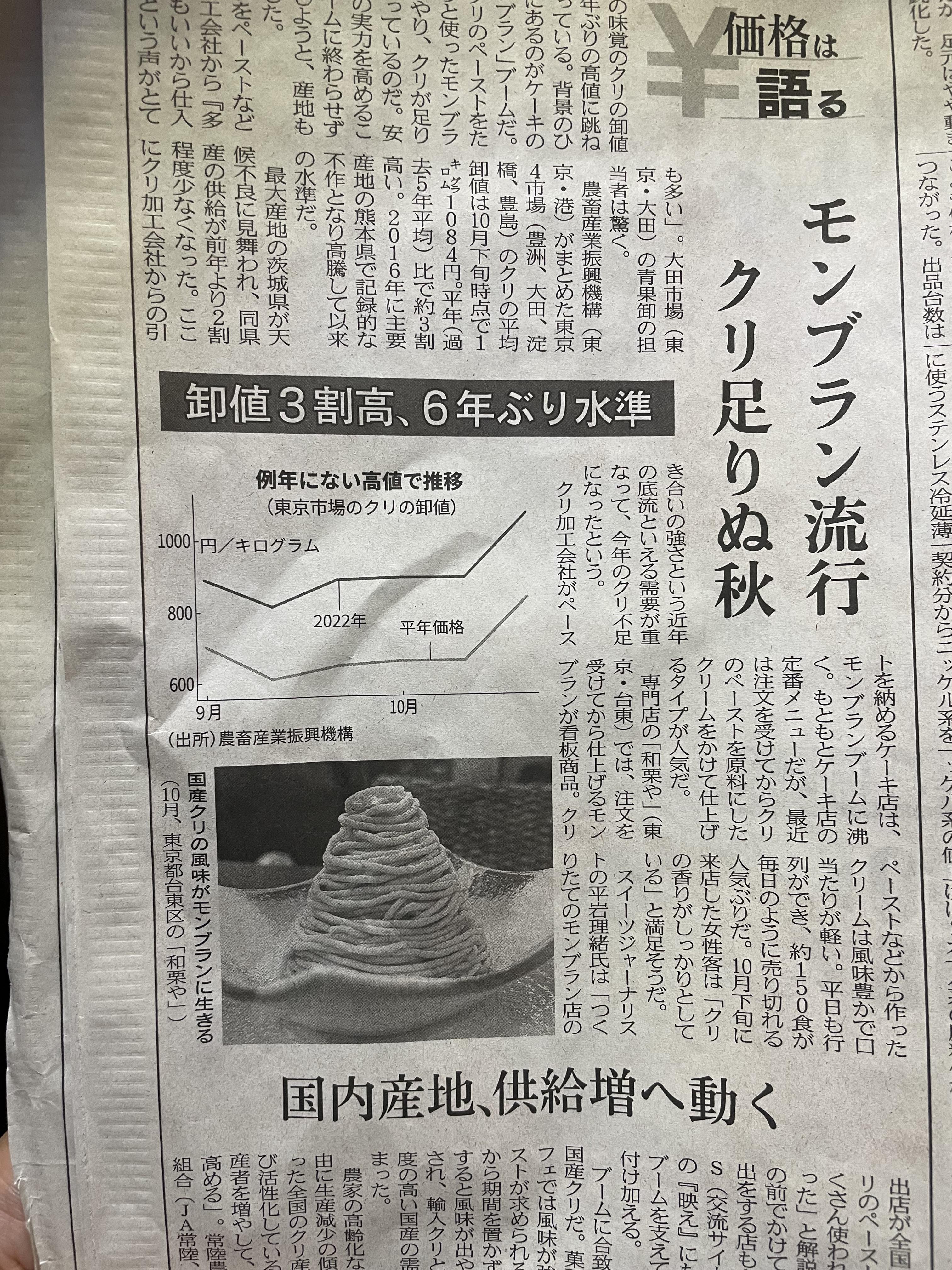 일본에서는 요즘 몽블랑이 유행이라서 밤 가격이 상승하고 있다고 한다.