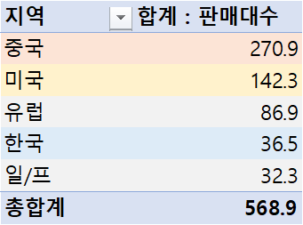 지역별로 구분하면 중국이 압도적