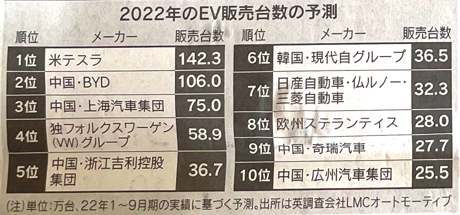 사실 여기서 볼만한 점은 2022년 EV판매대수 예측치이다.