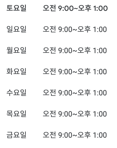 일단 운영시간부터가 오후 1시 전에 다 끝난다.