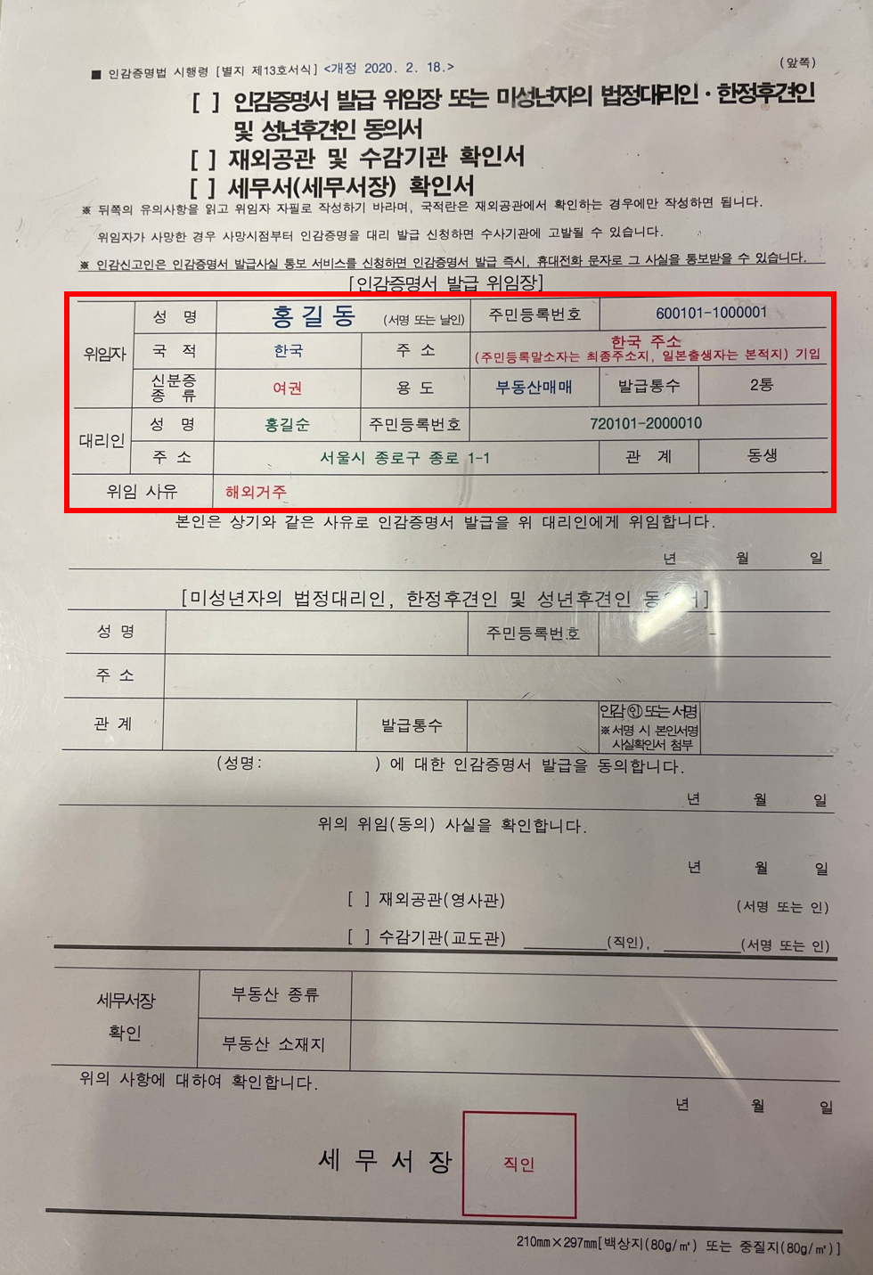 해외에서 대리인을 통한 부동산 매도 시 필요서류