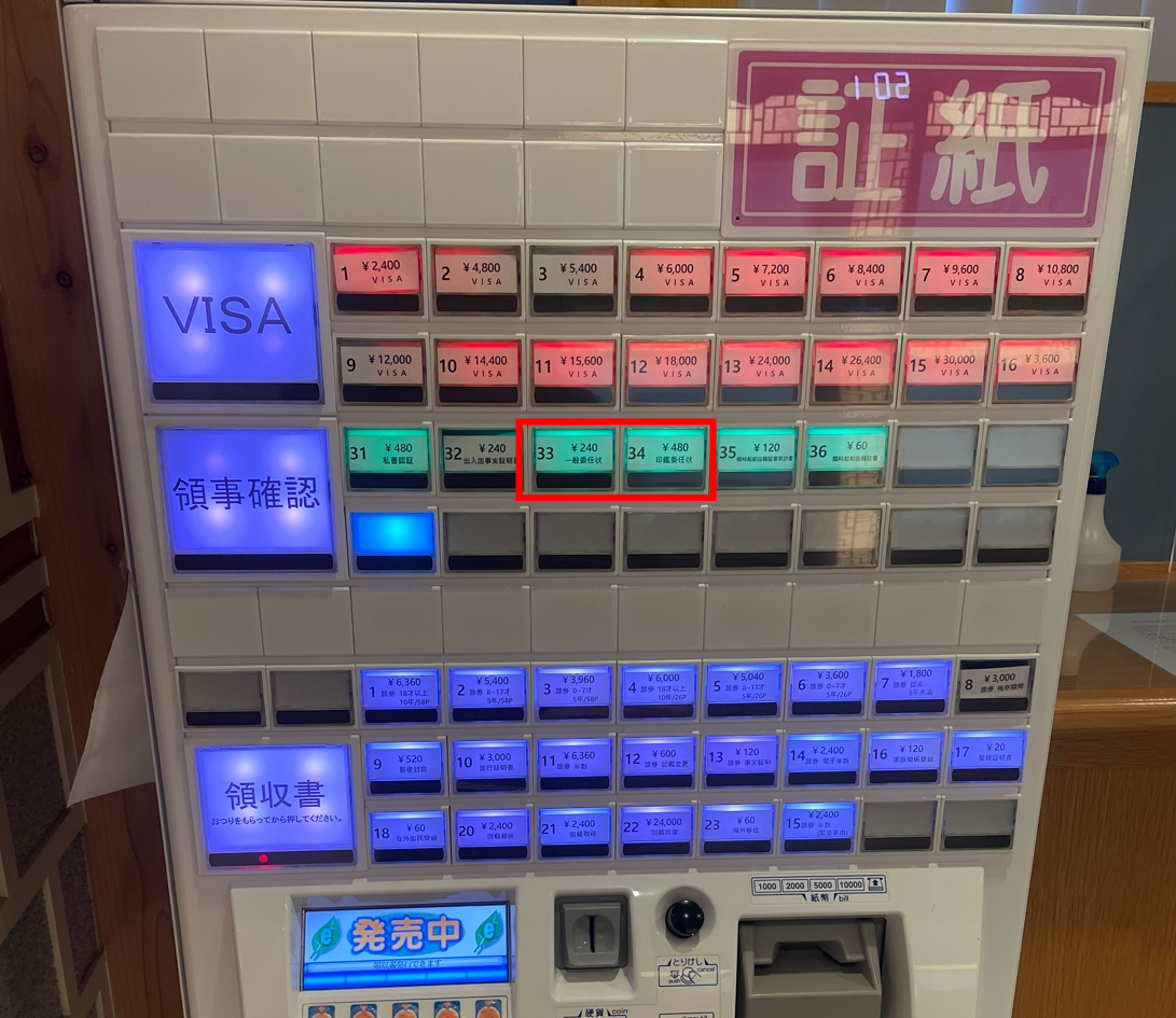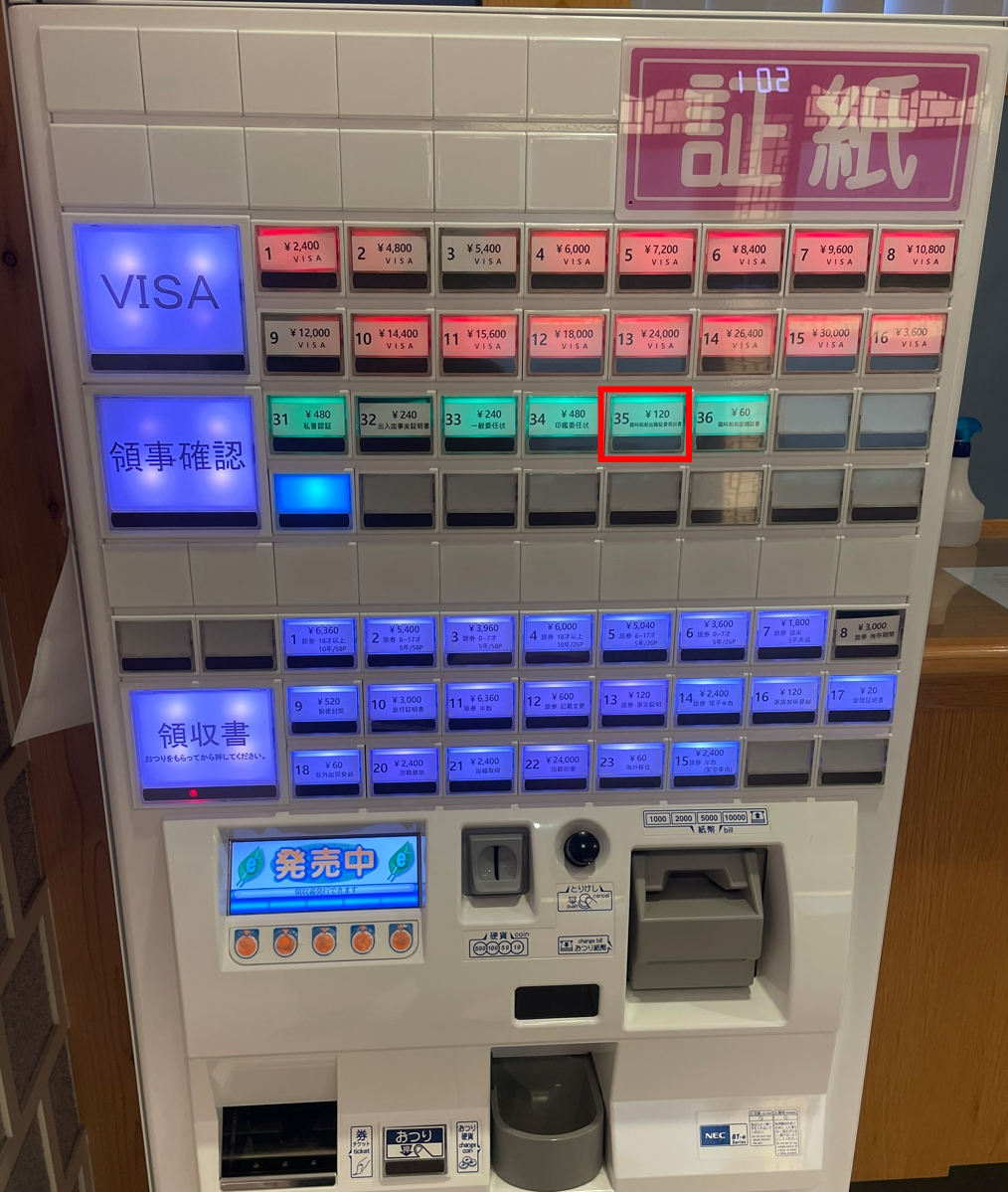 2층에서 자판기 13번 인지 120엔 지불하고 발급받았다.