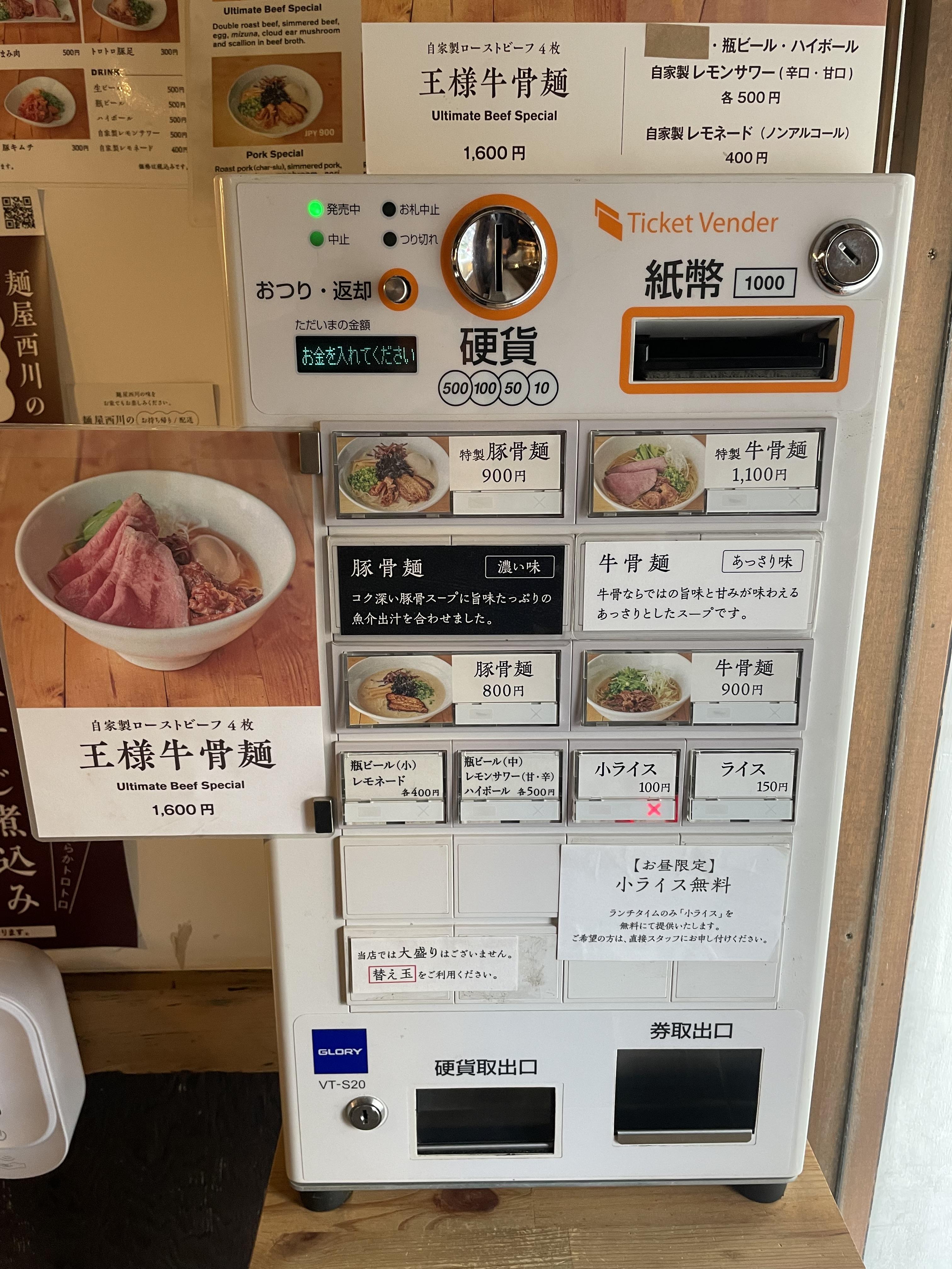 특 돈코츠 900엔, 특 소고기 육수 1,100엔..
