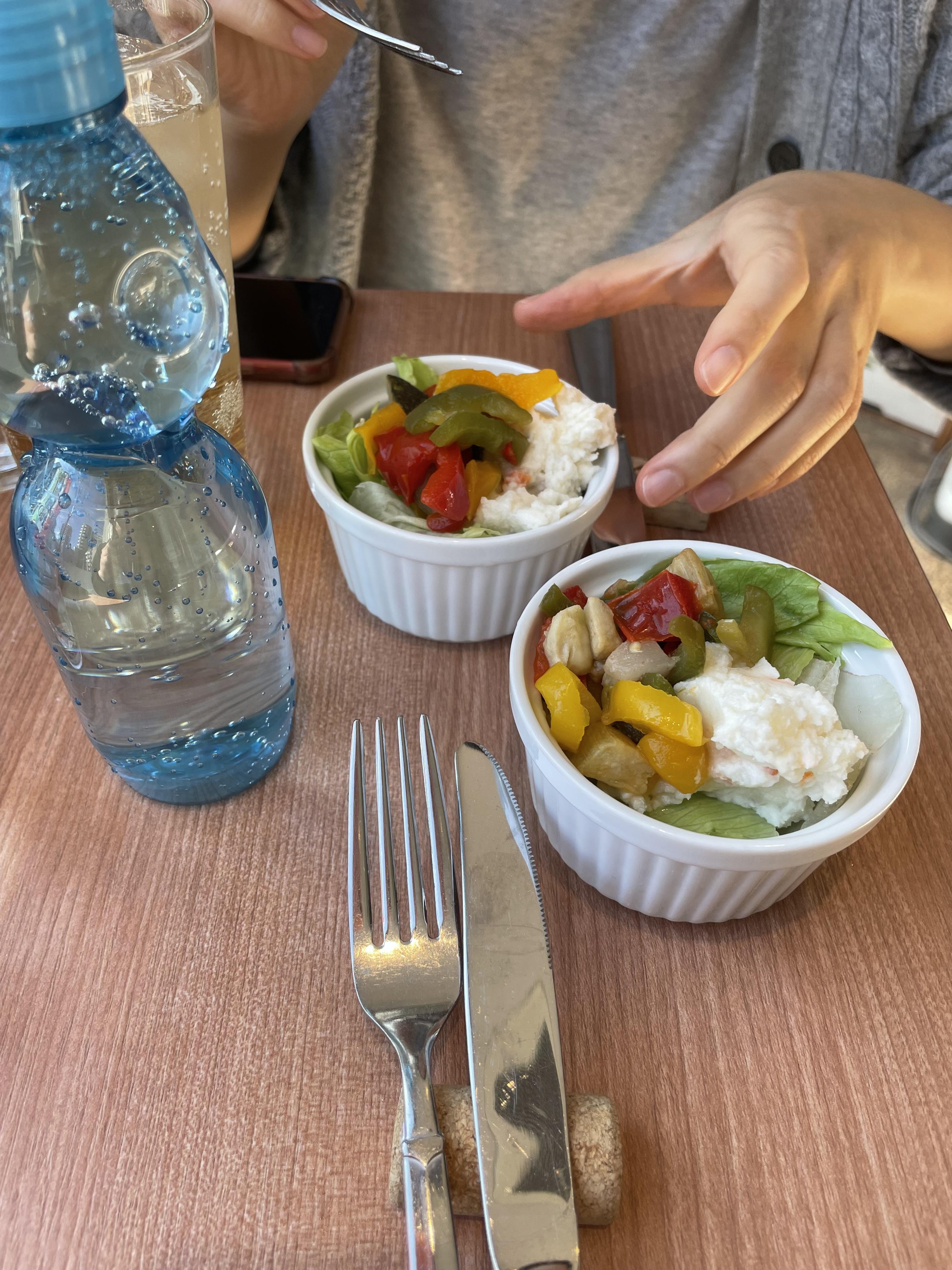 점심엔 200엔을 더 내면 런치세트로 음료수와 샐러드가 나온다.