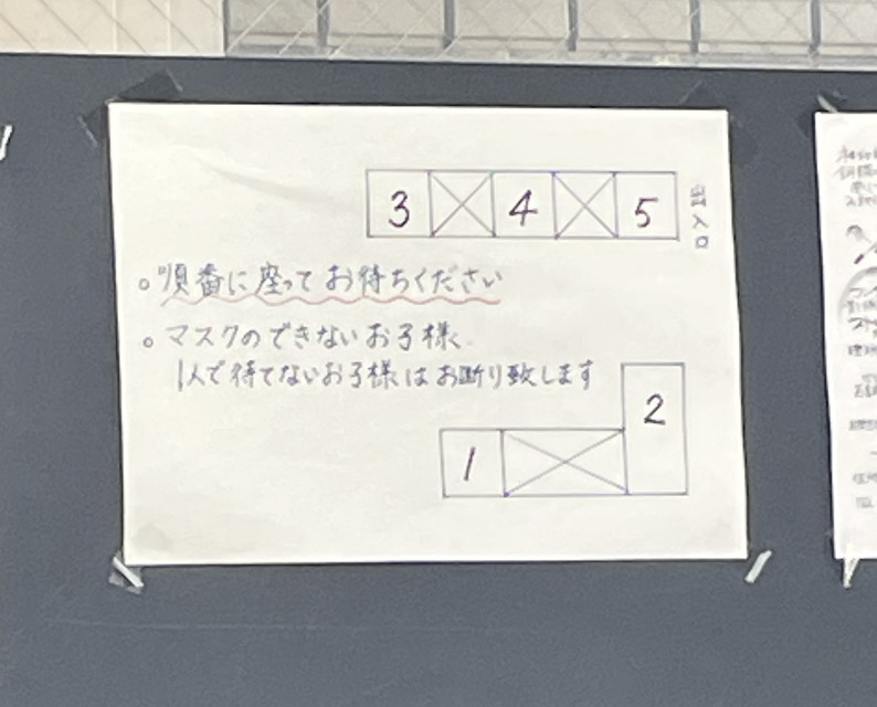 마스크를 하지 못하는 코도모나 동행인은 밖에서 기다려야 한다.