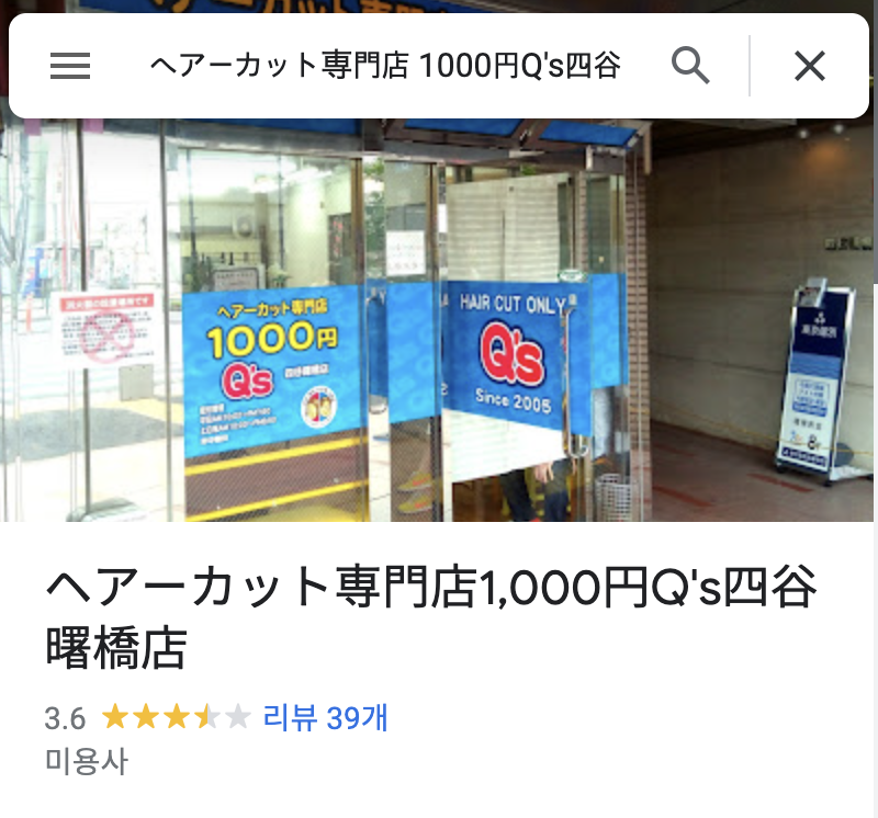 ヘアーカット専門店1,000円Q's四谷曙橋店 · 2-14 Sumiyoshicho, Shinjuku City, Tokyo 162-0065 일본