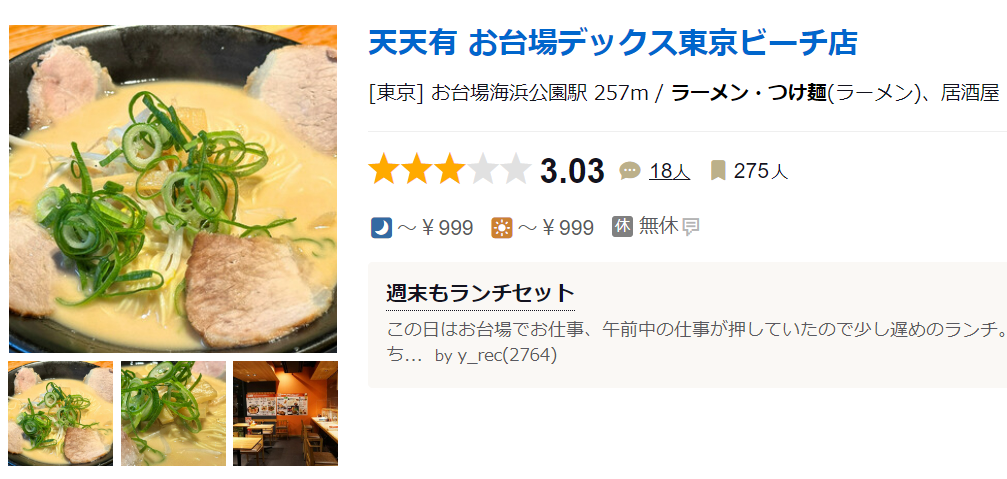 中華そば 天天有 · 〒135-0091 東京都港区台場1丁目6−1