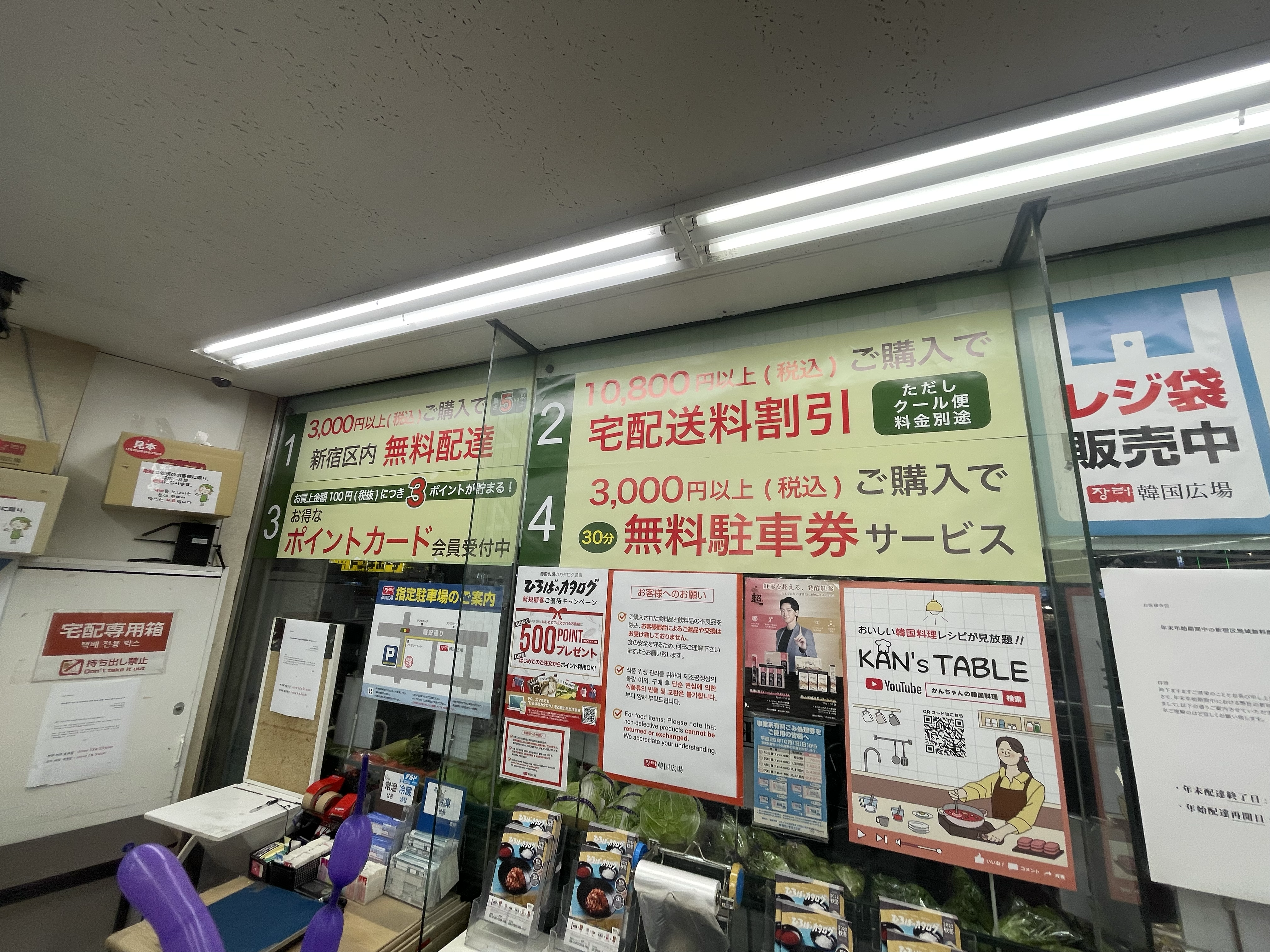 3,000엔 이상 구입 시 신주쿠내 무료배송 시스템이 갖추어져있다..