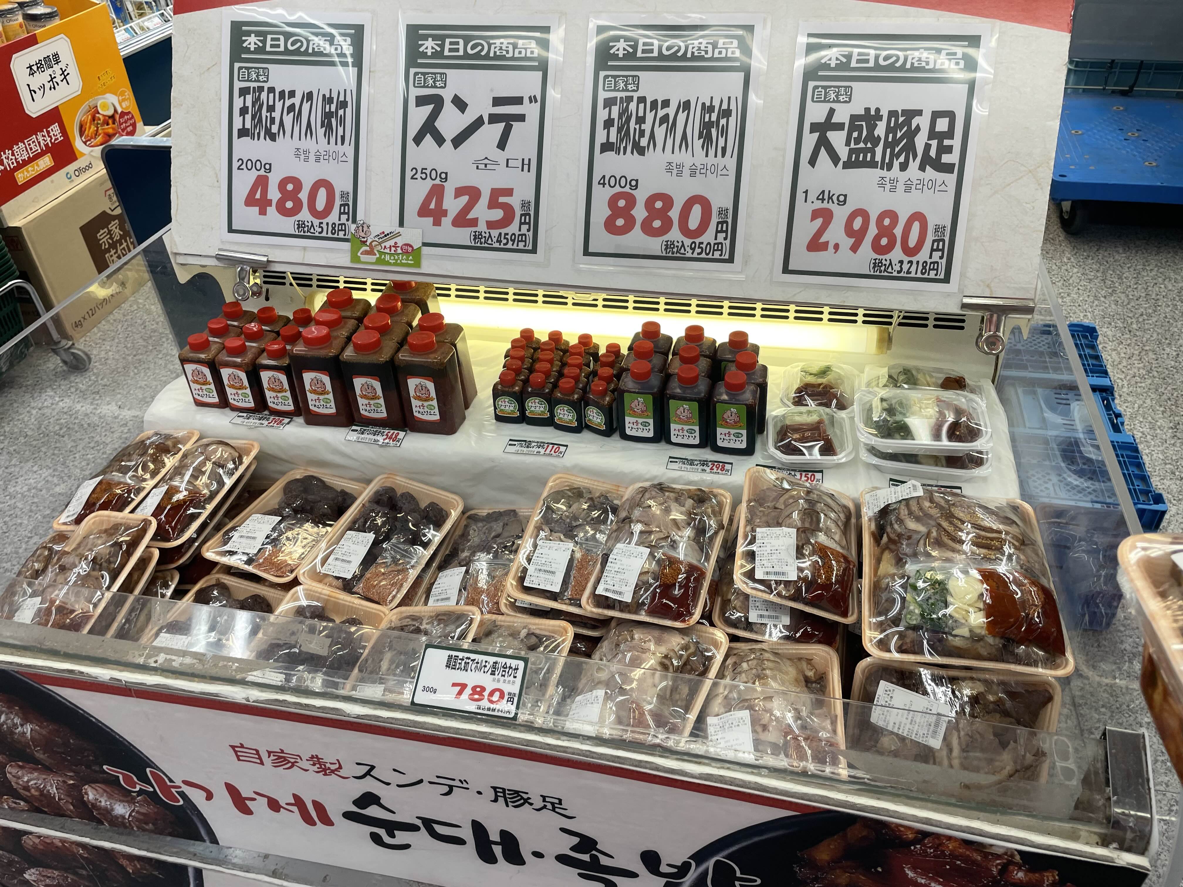 족발 200g 518엔, 400g 950엔, 1.4kg 3,218엔