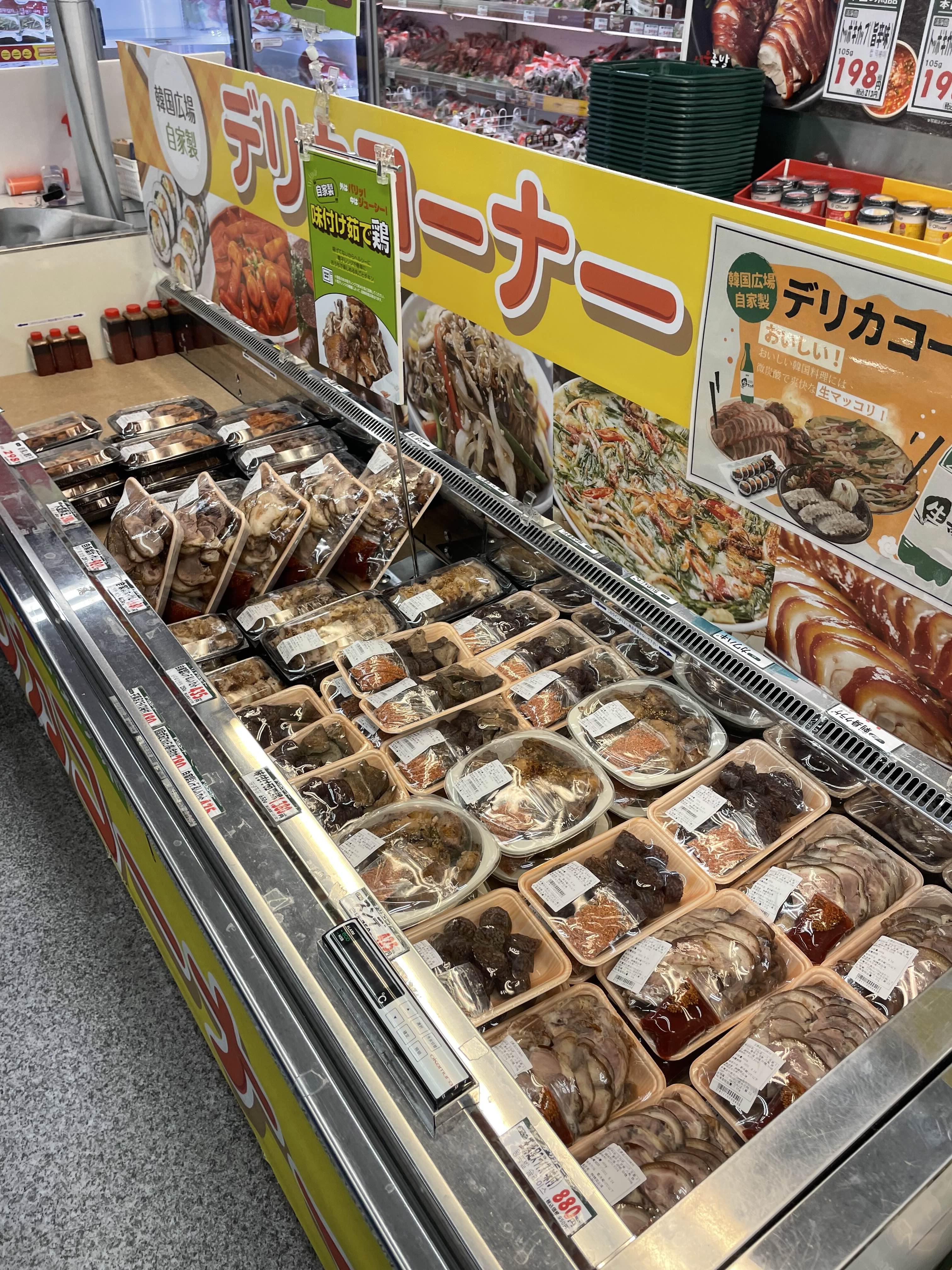 마트에서 만든 김치 족발 보쌈 등도 진열되어 있다